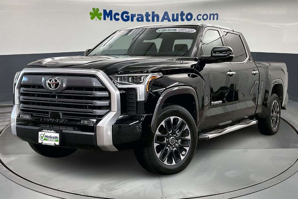 New Price! 2023 Toyota Tundra Limited 4WD, Black Artificial Leather. CARFAX One-Owner. 2023 Toyota Tundra Limited Certification Program Details: McGrath Certified Benefits: Free Vehicle History Report, 106 Point Full Vehicle Condition Inspection, "Like it or Exchange it!" Three Day Policy. Welcome to McGrath Toyota of Iowa City, your destination for award-winning automotive experiences. We were voted the number one dealer for 2025 Community Choice Award, Cargurus Top Rated Dealer and the prestigious President's Award from Toyota Motor Sales. We’re proud to deliver unmatched quality and service. With over 13,000 5-star Google reviews, our customers’ trust and satisfaction drive everything we do. Whether you’re buying, servicing, or building your fleet, experience why McGrath Ford Hyundai Kia is the top choice for all your automotive needs! We’ve got everything from tough trucks to fuel-sipping commuters and adventure-ready SUVs. Our vehicles go through a rigorous inspection process, and we offer multiple layers of certification based on the vehicle's age, mileage and inspection results. Whether you’re shopping for a brand-new ride or a budget-friendly pre-owned gem, we’re here to make the process easy, fun, and stress-free.