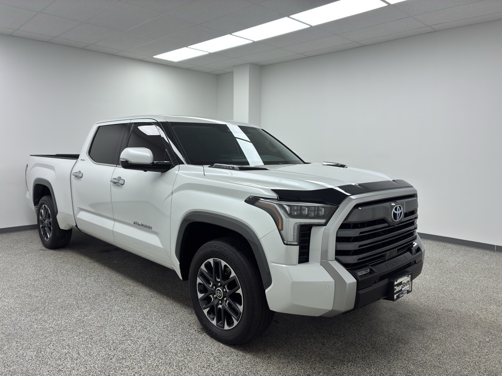 Engineered to conquer demanding terrain while delivering modern efficiency, this 2023 Toyota Tundra i-FORCE MAX Hybrid 4x4 Limited CrewMax blends serious off-road capability with next-generation hybrid performance. Finished in Wind Chill Pearl with a Black interior, this Tundra is built for drivers who need uncompromising strength without sacrificing innovation or refinement. At its core is Toyota's i-FORCE MAX Twin-Turbo V6 Hybrid powertrain, pairing a gas engine with an electric motor to deliver instant low-end torque, exceptional towing confidence, and improved fuel efficiency—all managed through a 10-Speed Automatic Transmission and a robust 4WD system. This Tundra i-FORCE MAX delivers the rare combination of trail-rated toughness, hybrid efficiency, and full-size truck capability, making it an ideal choice for off-road adventures, towing demands, and everyday driving alike.