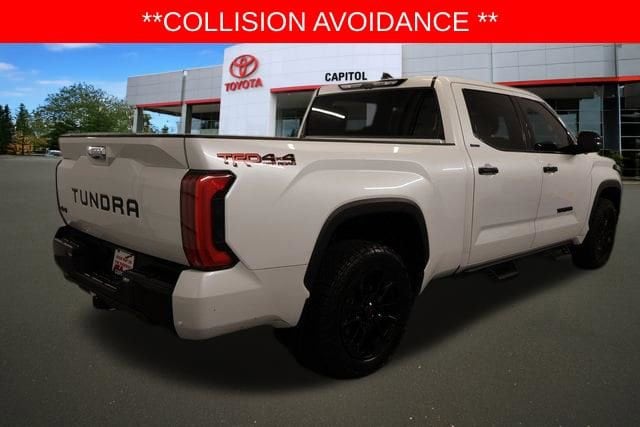 All roads lead to Capitol Toyota and we are excited to offer this 2023 Toyota Tundra Limited. This impressive truck is equipped with an array of advanced features designed to enhance your driving experience. Collision Avoidance, Adaptive Cruise, Blindspot Monitor, Backup Camera, Apple CarPlay/Android Auto, Bluetooth, TRD Off-Road Package with Bilstein Shocks, Bedside Decal, Black Grille, Mud Guards, and Multi-Terrain Back Monitor, JBL Premium Audio System, Spray-On Bed Liner, Premium Package with Towing Package and Full LED Headlamps. Powered by a 3.4L V6 engine and 10-speed automatic transmission, this Tundra Limited delivers a commanding 4WD performance with an impressive 17 city/22 highway MPG. The Wind Chill Pearl exterior complements the rugged yet refined interior featuring SofTex-trimmed seats with heating and ventilation. This Tundra is loaded with advanced safety technologies providing you with added peace of mind on the road. The Backup Camera and Apple CarPlay/Android Auto integration make it easy to stay connected and navigate with confidence. Whether tackling off-road adventures or navigating the daily commute, this 2023 Toyota Tundra Limited is a versatile and capable companion. With its impressive capabilities, advanced features, and exceptional style, this truck is sure to impress.