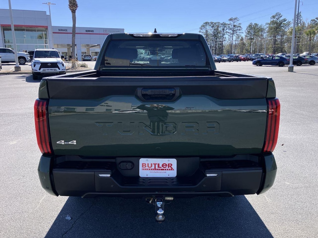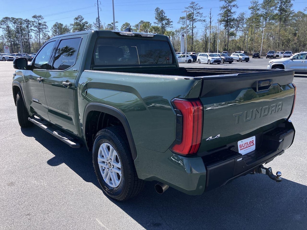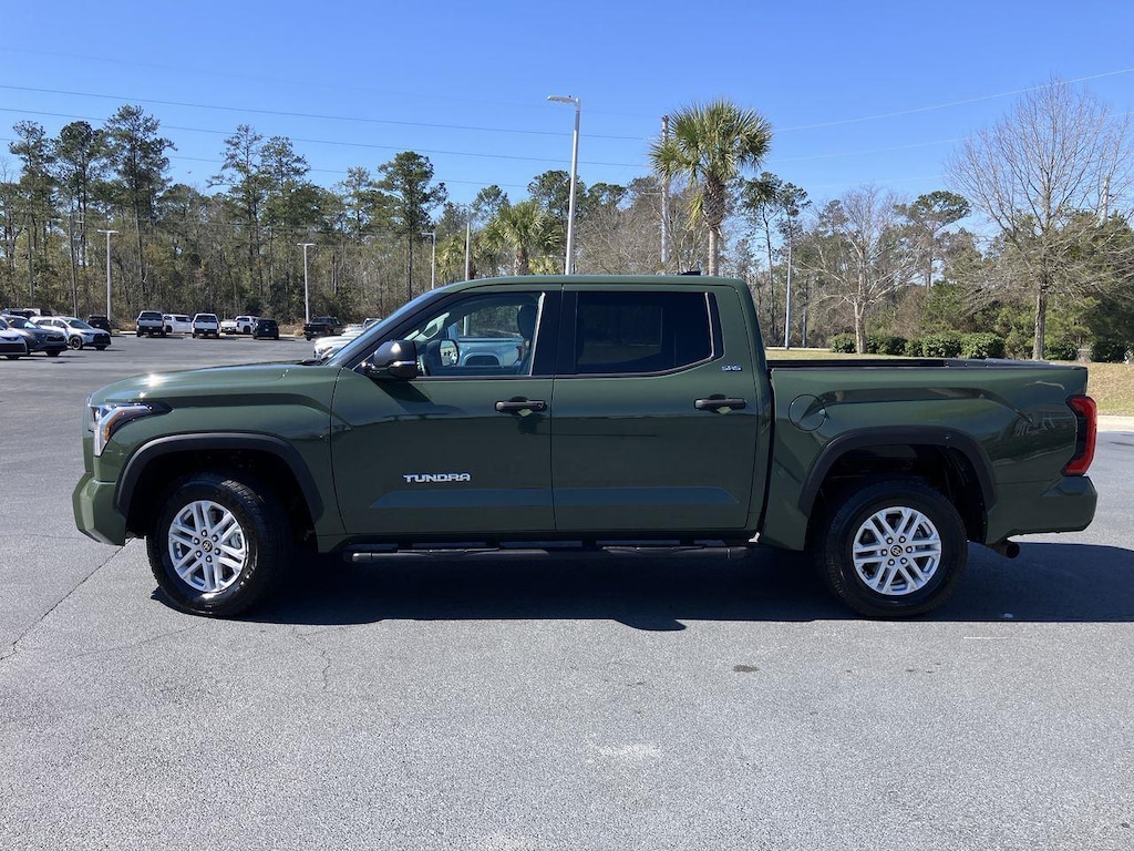 The latest generation of full-size truck featuring new engine & transmission with more horsepower and torque while improving EPA fuel ratings. Thank you for your interest in our 2023 Toyota Tundra SR5 CrewMax traded with 63,418 miles. This Toyota Tundra has gone through a rigorous 160-point inspection and comes with our Blue Chip 60-day/2,000 miles Limited Powertrain Warranty, so purchase with added confidence! The 3rd generation of the Toyota Tundra debuted in 2022 and heralded a new truck from the ground up. Gone is the old 5.7L V8 which was replaced by the turbocharged 3.4L V6 engine and a 10-speed automatic transmission. This newer powertrain combo offers up to 389 HP and 479 lb-ft. of torque and still gets an impressive fuel rating of up to 22 MPG on the highway from the EPA. Towing capacity is also stout, with a rating from Toyota of 11,160 lbs. when it is properly equipped. The newly designed exterior reflects Toyota's modern branding and marks a vast improvement over previous design. The Army Green exterior is free from damage with only a few normal blemishes. All four tires are stout and perfect for daily driving. With seating for up to 5 passengers, the Boulder (gray) cloth seats are all very clean and comfortable. The SR5 trim was number two in the lineup of seven separate levels available. It added onto the base trim with alloy wheels, LED foglights, a drive mode selector, rear center armrest & cupholders, adjustable tie-down cleats in the cargo box and a towing package w/class IV hitch, integrated trailer brake controller & four-pin and seven-pin trailer connectors. Not only do you get to enjoy such an array of amazing features with this 2023 Toyota Tundra 4WD SR5 CrewMax, but you also receive the unprecedented perks of The Valdosta Toyota Used Vehicle Advantage: that's 9 benefits and over $1,000 OF ADDED VALUE with your purchase, ONLY at Valdosta Toyota. So, act now! Our Certified Product Specialists are prepared to provide a quick and customized response to your call, text, chat, or email. Our confirmed lowest prices, answers to your questions, and award-winning dealership experience are just a few clicks away, so why delay?