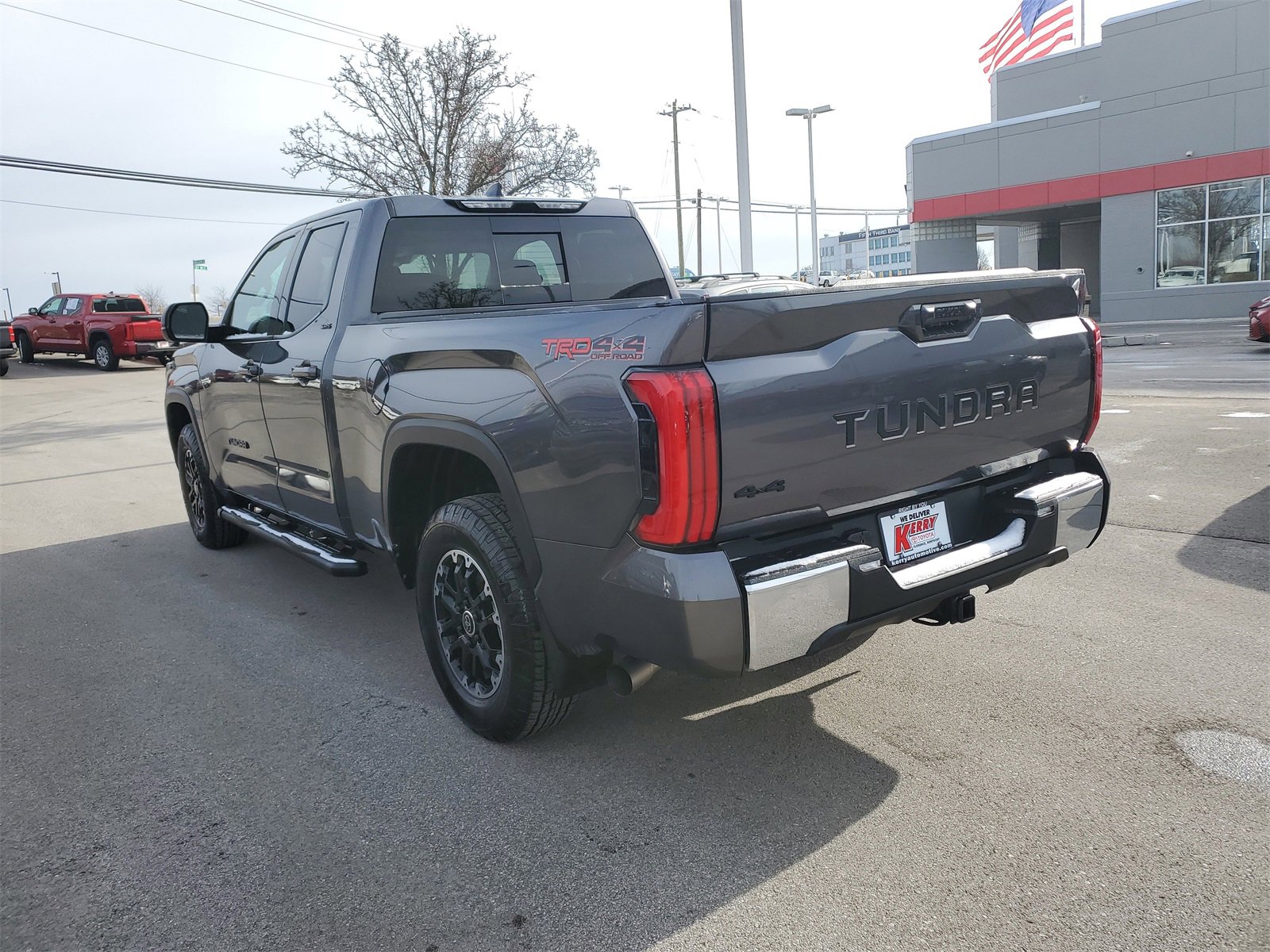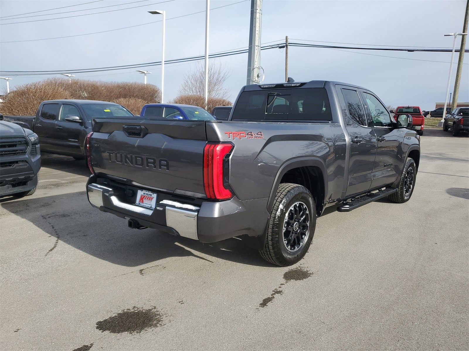 Proudly serving Cincinnati, Florence, Alexandria, Dayton, Hamilton, Dry Ridge, Lexington, Louisville, Nicholasville. Magnetic Gray Metallic 2023 Toyota Tundra SR5 4WD 10-Speed Automatic 3.4L V6 18" Alloy Wheels, 4-Way Adjustable Front Bucket Seats, 6 Speakers, Alloy wheels, AM/FM radio: SiriusXM, Apple CarPlay/Android Auto, Auto High-beam Headlights, Bedside TRD Off Road Decal, Black Front Bumper Letters (TMS), Black Grille w/Chrome Surround, Black Tailgate Insert (TMS), Brake assist, Bumpers: body-color, Delay-off headlights, Electronic Stability Control, Emergency communication system: Safety Connect (10-year trial), Exterior Parking Camera Rear, Front & Rear Mud Guards, Front fog lights, Front Spoiler Delete, Fully automatic headlights, Heated door mirrors, Knee airbag, Leather Steering Wheel, Low tire pressure warning, Panic alarm, Passenger door bin, Power door mirrors, Radio data system, Radio: Audio Multimedia System, Rear step bumper, Safety Connect, Security system, Speed control, Stainless Steel Door Edge Guard (TMS), Traction control, TRD Off-Road Package, TRD Off-Road Suspension w/Bilstein Shocks, Variably intermittent wipers. Recent Arrival! Odometer is 21535 miles below market average!
