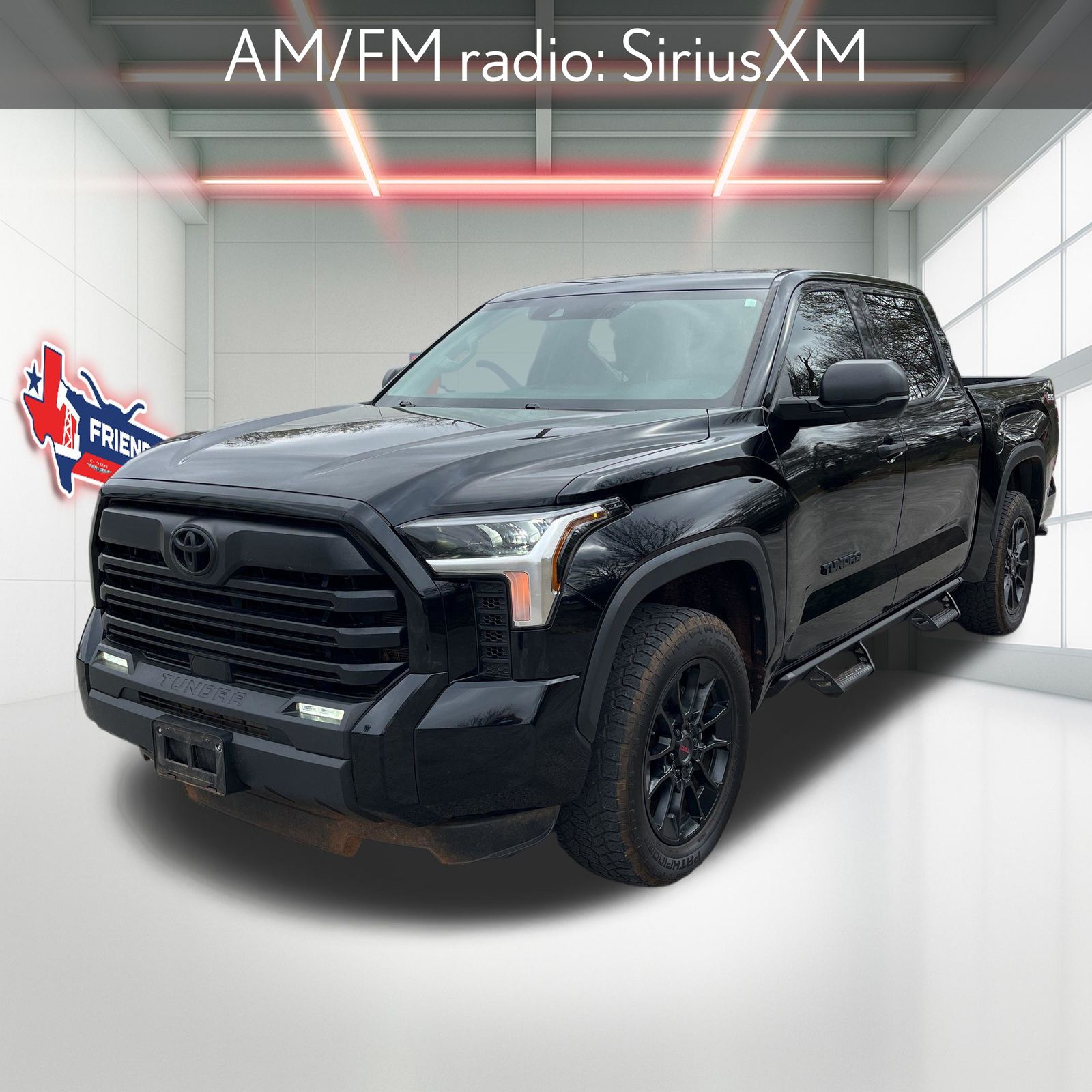 Black 2023 Toyota Tundra SR5 4WD 10-Speed Automatic 3.4L V6 4WD, Boulder Cloth, 18" Alloy Wheels, 3.31 Axle Ratio, 32 Gallon Fuel Tank, 4-Way Adjustable Front Bucket Seats, 4-Wheel Disc Brakes, ABS brakes, AM/FM radio: SiriusXM, Apple CarPlay/Android Auto, Automatic temperature control, Blind Spot Monitor w/Lane Change Assist, Brake assist, Bumpers: body-color, Driver door bin, Driver vanity mirror, Dual front impact airbags, Dual front side impact airbags, Electronic Stability Control, Fabric Seat Trim (FB), Front anti-roll bar, Front Bucket Seats, Front Center Armrest, Front reading lights, Front wheel independent suspension, Fully automatic headlights, Illuminated entry, Knee airbag, Low tire pressure warning, Occupant sensing airbag, Outside temperature display, Overhead airbag, Overhead console, Panic alarm, Parking Support Alert/Brake, Passenger door bin, Passenger vanity mirror, Power steering, Power windows, Rear reading lights, Rear step bumper, Security system, Speed control, Speed-sensing steering, Split folding rear seat, SR5 Convenience Package, Steering wheel mounted audio controls, Tachometer, Telescoping steering wheel, Tilt steering wheel, Traction control, Trip computer, Variably intermittent wipers, Voltmeter. Friendly CDJR is excited to offer this stout 2023 Toyota Tundra in Black. This vehicle has passed our comprehensive inspection and comes with the following features; Recent Arrival!