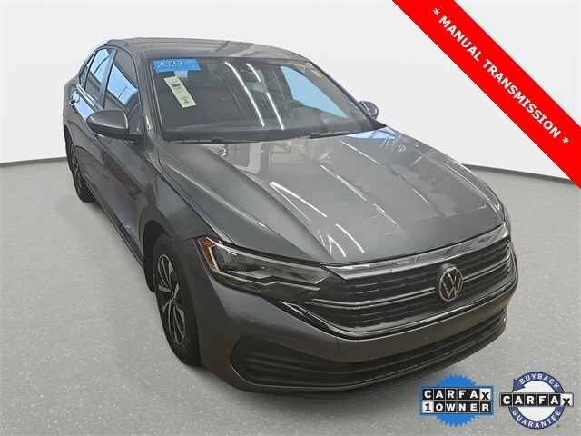 Recent Arrival! Carfax One-Owner. 2023 Volkswagen Jetta 1.5T S Platinum Gray Metallic FWD 6-Speed Manual 1.5L I-4 DI DOHC Turbocharged, Black Cloth, Alloy wheels, Delay-off headlights, Exterior Parking Camera Rear, Fully automatic headlights, Panic alarm, Steering wheel mounted audio controls. 29/42 City/Highway MPG. Come see this 2023 Platinum Gray Metallic Volkswagen Jetta 1.5T S FWD and many more at Sport Durst today!