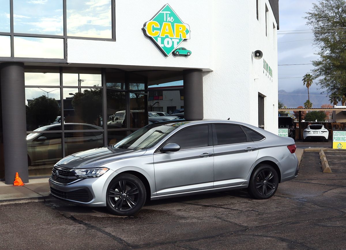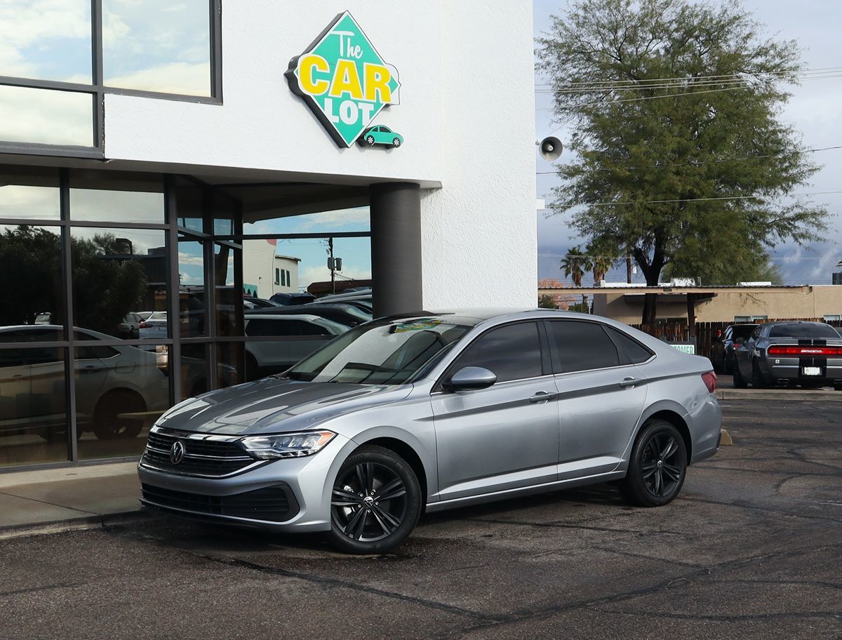 Our one owner 2023 Volkswagen Jetta SE Sedan in Pyrite Silver Metallic is designed to help you get more out of your daily outings! Powered by a TurboCharged 1.5 Liter TSI 4 Cylinder delivering 158hp to an 8 Speed Tiptronic Automatic transmission. That setup provides peppy performance in our Front Wheel Drive sedan, which also scores nearly 41mpg on the highway. Distinctive and sophisticated, our Jetta gives off an upscale vibe with LED lighting, heated power mirrors, and stylish alloy wheels. Go ahead and find your comfort zone in our SE cabin. It's easy to do with the heated V-Tex front seats, eight-way power for the driver, a leather-wrapped steering wheel, dual-zone automatic climate control, keyless access, pushbutton ignition, remote start, and an 8-inch Digital Cockpit driver display. You're ready to connect with the 6.5-inch touchscreen, Android Auto®, Apple CarPlay®, Bluetooth®, WiFi compatibility, and an AM/FM/USB sound system. There's ample trunk space, too! Safety is vital for Volkswagen, which helps boost your peace of mind with blind-spot monitoring, forward collision warning, automatic braking, adaptive cruise control, lane assistance, a rearview camera, rear cross-traffic alert, and more. Not your typical sedan, our Jetta SE is a dynamic daily driver that can help you do more! Save this Page and Call for Availability. We Know You Will Enjoy Your The Car Lot Test Drive Towards Ownership!
