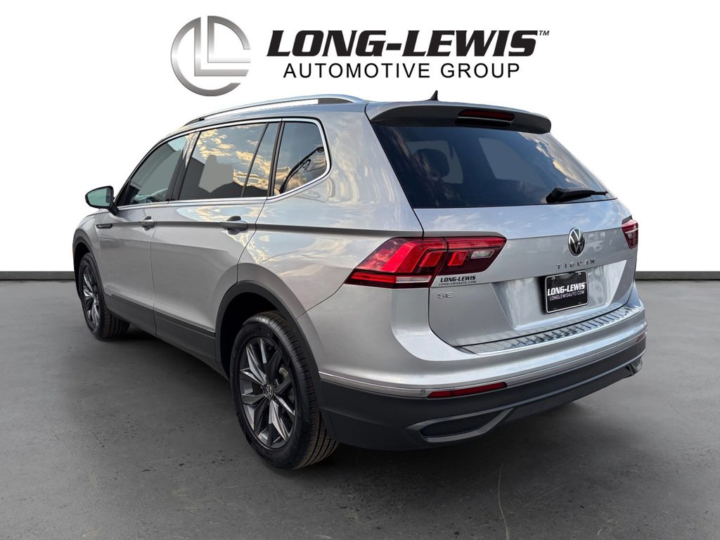 Clean Carfax. 2023 Volkswagen Tiguan 2.0T SE Pyrite Silver Metallic 2.0T SE FWD 8-Speed Automatic with Tiptronic 2.0L TSI DOHC 3-Row Rubber Monster Mats w/Logo Kit (Set of 5), 3.33 Axle Ratio, 3rd row seats: bench, 4-Wheel Disc Brakes, 4-Wheel Independent Suspension, 6 Speakers, ABS brakes, Air Conditioning, Alloy wheels, AM/FM radio: SiriusXM with 360L, Auto-dimming Rear-View mirror, Auto-Dimming Rearview Mirror w/Compass/HomeLink (DISC), Automatic temperature control, Brake assist, Bumperdillo Rear Bumper Chrome Protection Plate, Bumpers: body-color, Cargo Area Retractable Privacy Cover, Compass, Credit - Power Rear Liftgate Removed, Delay-off headlights, Driver door bin, Driver vanity mirror, Dual front impact airbags, Dual front side impact airbags, Emergency communication system: VW Car-Net Safe & Secure 5-year, Exterior Parking Camera Rear, First Aid Kit, Four wheel independent suspension, Front anti-roll bar, Front Bucket Seats, Front Center Armrest, Front dual zone A/C, Front reading lights, Fully automatic headlights, Heated door mirrors, Heated Front Comfort Seats, Heated front seats, Heavy Duty Trunk Liner w/VW CarGo Blocks, Illuminated entry, Leather Shift Knob, Low tire pressure warning, Occupant sensing airbag, Outside temperature display, Overhead airbag, Overhead console, Panic alarm, Passenger door bin, Passenger vanity mirror, Perforated V-Tex Leatherette Seating Surfaces, Power door mirrors, Power driver seat, Power Liftgate, Power steering, Power windows, Radio data system, Radio: MIB3 Composition Media AM/FM/HD, Rain sensing wipers, Rear anti-roll bar, Rear reading lights, Rear seat center armrest, Rear window defroster, Rear window wiper, Remote keyless entry, Roadside Assistance Kit, Security system, Speed control, Speed-sensing steering, Split folding rear seat, Spoiler, Steering wheel mounted audio controls, Tachometer, Telescoping steering wheel, Tilt steering wheel, Traction control, Trip computer, Turn signal indicator mirrors, Variably intermittent wipers, VW Care.