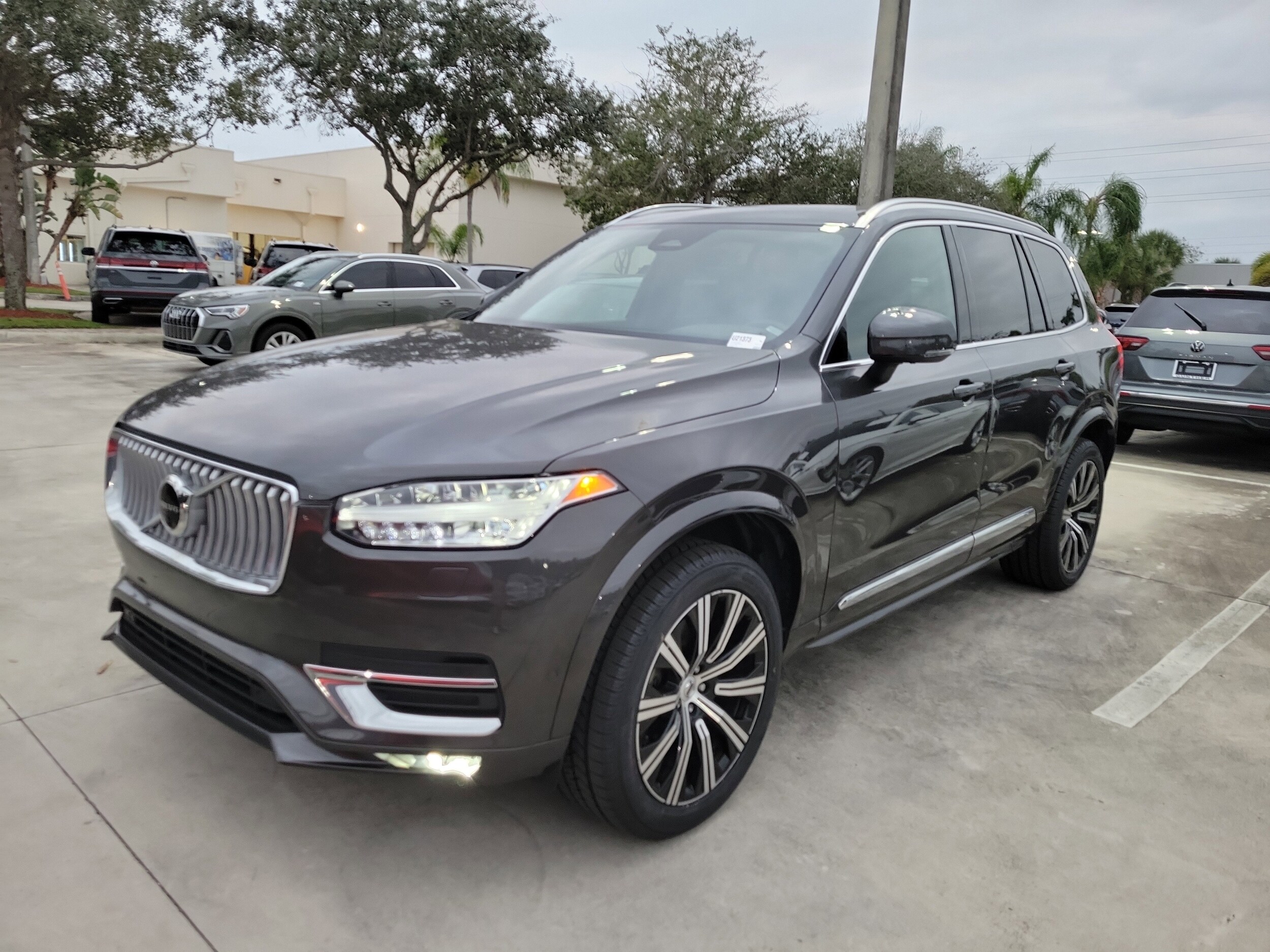 Recent Arrival! Carfax One-Owner. Platinum Gray Metallic 2023 Volvo XC90 B5 Plus 2.0L I4 Turbocharged DOHC 16V LEV3-ULEV70 Automatic with Geartronic AWD Protection Package Premier (Bumper Cover, Cargo Tray, First Aid Kit, Rubber Floor Mats, and Wheel Locks), 10 Speakers, 3rd row seats: bucket, 4-Wheel Disc Brakes, ABS brakes, Air Conditioning, Alloy wheels, AM/FM radio: SiriusXM, Anti-whiplash front head restraints, Apple CarPlay, Auto High-beam Headlights, Auto-dimming door mirrors, Auto-dimming Rear-View mirror, Automatic temperature control, Brake assist, Bumpers: body-color, Delay-off headlights, Driver door bin, Driver vanity mirror, Dual front impact airbags, Dual front side impact airbags, Electronic Stability Control, Emergency communication system: Volvo Cars App w/4 Year Subscription, Exterior Parking Camera Rear, Four wheel independent suspension, Front anti-roll bar, Front Bucket Seats, Front Center Armrest w/Storage, Front dual zone A/C, Front fog lights, Front reading lights, Fully automatic headlights, Garage door transmitter: HomeLink, Genuine wood dashboard insert, Genuine wood door panel insert, Headlight cleaning, Heated door mirrors, Heated Front Bucket Seats, Heated front seats, Heated rear seats, Heated steering wheel, Illuminated entry, Integrated rear child seats, Knee airbag, Leather Shift Knob, Leather Upholstery, Low tire pressure warning, Memory seat, Navigation System, Occupant sensing airbag, Outside temperature display, Overhead airbag, Panic alarm, Passenger door bin, Passenger vanity mirror, Power door mirrors, Power driver seat, Power moonroof, Power passenger seat, Power steering, Power windows, Radio data system, Radio: High Performance Audio System, Rain sensing wipers, Rear air conditioning, Rear anti-roll bar, Rear dual zone A/C, Rear fog lights, Rear reading lights, Rear seat center armrest, Rear window defroster, Rear window wiper, Remote keyless entry, Security system, Speed control, Speed-sensing steering, Split folding rear seat, Spoiler, Steering wheel mounted audio controls, Tachometer, Telescoping steering wheel.