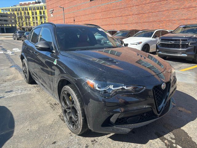 Recent Arrival! Golling Alfa Romeo of Birmingham is pumped up to offer this 2024 Alfa Romeo Stelvio Quadrifoglio in Vulcano Black Metallic with Black Leather. This Stelvio is very well equipped with Active Assist Plus Package (Active Blind Spot Assist, Driver Attention Alert, Highway Assist System, Intelligent Speed Assist (ISA), Lane Keep Assist, Traffic Jam Assist, and Traffic Sign Recognition), Quick Order Package 25B Carbon (Carbon Fiber Exterior Mirrors, Carbon Fiber V Scudetto Grille, Dark Miron Badging, Gold Painted Calipers, Red Leather Sport Seats, and Wheels: 21" x 9" Fr & 21" x 10" Rr Dark 5-Hole), Dual-Pane Sunroof, Heated front seats, Heated rear seats, ParkView Rear Back-Up Camera, and Power Liftgate.