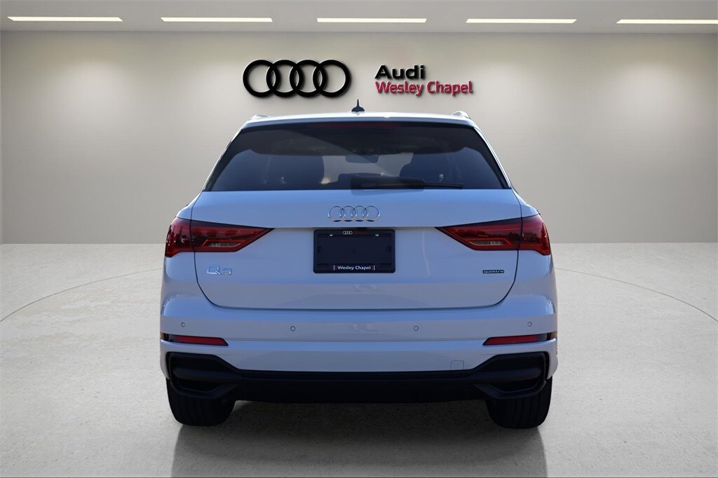 CARFAX One-Owner. 2024 Audi Q3 Glacier White Metallic Premium Plus S Line quattro REMAINDER OF FACTORY WARRANTY, SERVICE RECORD AVAILABLE, FACTORY MAINTENANCE UP TO DATE, NAVIGATION GPS, PREMIUM PLUS PKG, REAR BACK UP CAMERA, LANE MONITOR ASSIST, BLUE TOOTH HANDSFREE, SIRIUS XM, 8 AIRBAGS, HEATED SEATS, APPLE CAR PLAY/ANDROID AUTO, 12.3" Audi Virtual Cockpit Plus Screen, Alexa Integration, Alloy wheels, Audi Connect NAV & PLUS, Audi MMI Navigation Plus, Convenience Package, LED Interior Lighting Plus Package, Premium Plus Package, SiriusXM w/360L, Sonos Premium Sound System w/3D Sound, Technology Package, Top View Camera System, Traffic Sign Recognition, Wheels: 18" 5-V-Spoke-S Design, Wireless Apple CarPlay/Android Auto. quattro 8-Speed Automatic with Tiptronic 2.0L 4-Cylinder TFSI Recent Arrival! Odometer is 4051 miles below market average! 20/28 City/Highway MPG Audi Wesley Chapel Internet Pricing Policy The efficiencies of e-commerce enable us to sometimes offer e-commerce consumers pricing benefits. As a result, prices on this website may only be available to consumers who initiate their transactions via email or via this site's contact mechanisms. Although we try to ensure all of our pricing and photos are correct, we are not responsible for any typographical or mechanical errors on this website. Vehicle art depicted is for the purposes of advertising and may not be representative of actual vehicle(s) in stock. Special advertised offers reflect specific vehicle stock numbers listed in the supporting information for each offer and are available for well-qualified consumers with approved credit. Special offers may require financing or leasing through a particular financial services vendor, are for a limited time, and subject to change without notice. All rebates and incentives are to be assigned to the dealer. Some special advertised offers are independent of each other and may not be combined with any other offers, or specials. Some incentives may not be available to all consumers and may depend on the method of purchase or lease. All vehicles are subject to prior sale. Please contact the dealership for the most current information. This is easily done by calling us at 813-607-3100 or by visiting us at the dealership.