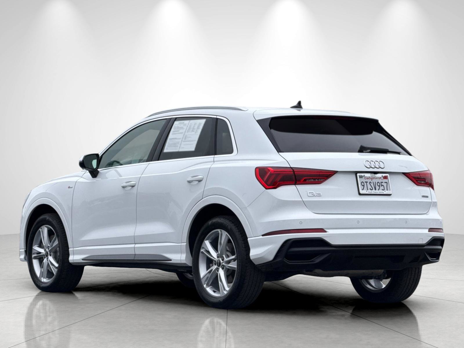 This elegant Audi Q3 in S Line quattro Premium Plus trim offers a seamless blend of luxury and performance. The sleek and sophisticated design of this multi-purpose vehicle is accentuated by its LED lower beam headlamps that provide exceptional visibility. With a robust 2.0-liter, 4-cylinder turbocharged engine generating 228 horsepower, driving this Audi is sure to be a thrilling experience. Safety features abound in this model, including standard ABS, Blind Spot Intervention, Adaptive Cruise Control, Forward Collision Warning, Lane Departure Warning, and Park Assist. The airbag system covers the first row for both driver and passenger, ensuring peace of mind for all occupants. The Q3 comes equipped with all-wheel drive for enhanced handling and performance, making it suitable for various road conditions. Additionally, the vehicle includes systems like ESC (Electronic Stability Control) and Traction Control for added safety and stability. Inside, the Audi Q3 features a spacious cabin with manual seat belts for all passengers. The advanced entertainment system provides a pleasurable driving experience for everyone on board. The impeccable craftsmanship and attention to detail are evident throughout the interior, showcasing the brand's commitment to luxury and comfort. This Audi Q3 is a true representation of Audi's dedication to quality and innovation. With its impressive performance capabilities and array of safety features, this vehicle is a compelling choice for those seeking a versatile and stylish SUV. Join Audi Napa Valley in selecting this exceptional vehicle and become part of a dealership that values both its customers and community.