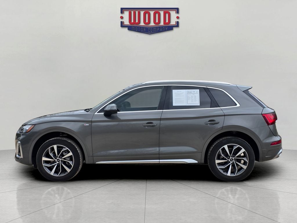 CARFAX One-Owner. Q5 45 S line Premium quattro, 4D Sport Utility, 2.0L Turbocharged, 7-Speed Automatic S tronic, quattro, Chronos Gray Metallic, Black w/Leather Seating Surfaces, Audi Advanced Key, Audi Virtual Cockpit Plus, Auto High-beam Headlights, Auto-Dimming Power Folding Exterior Mirrors, Automatic temperature control, Bang Olufsen Sound System w/3D Sound, Convenience Package, Driver Seat Memory, Electronic Stability Control, Front Bucket Seats, Front dual zone A/C, Heated 8-Way Power Front Bucket Seats, Heated front seats, Heated steering wheel, Illuminated entry, Leatherette Covered Center Console Door Armrests, Outside temperature display, Panoramic Sunroof, Power Adjustable Steering Column, Power driver seat, Power Liftgate, Power passenger seat, Power windows, Premium Plus Package, Rear fog lights, Remote keyless entry, Security system, SiriusXM w/360L, Speed control, Steering wheel mounted audio controls, Telescoping steering wheel, Top View Camera System, Wheels: 19' 5-Double-Arm Design Bi-Color Finish. Chronos Gray Metallic 2024 Audi Q5 45 S line Premium quattro quattro 7-Speed Automatic S tronic 2.0L Turbocharged A solid name you can trust... Wood Motor. 22/28 City/Highway MPG