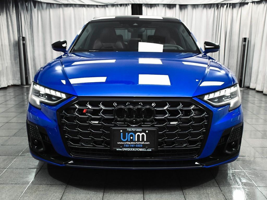 2024 Audi S8 4.0T quattro One Owner, Clean Carfax, S8 4.0T quattro, 4D Sedan, 4.0L V8 Turbocharged DOHC 32V LEV3-ULEV125 563hp, 8-Speed Automatic with Tiptronic, quattro, Firmament Blue Metallic, Merlot Red w/Valcona Leather Seat Upholstery. Firmament Blue Metallic 2024 Audi S8 4.0T quattro quattro 8-Speed Automatic with Tiptronic 4.0L V8 Turbocharged DOHC 32V LEV3-ULEV125 563hp. Recent Arrival! Odometer is 9558 miles below market average! Feel free to call the dealership at 732- 707-3223.