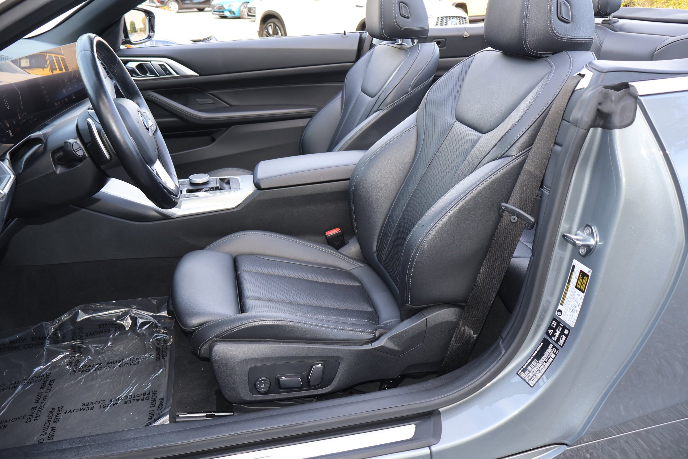 This stunning Skyscraper Gray Metallic 2024 BMW 430i xDrive is the ultimate way to enjoy the Florida sunshine. This luxury convertible is a true standout with its sleek design and all wheel drive performance. It comes with a clean, one owner CarFax and has been fully dealer serviced, ensuring it is in pristine condition for its next owner. With its power convertible roof, you can go from a quiet cabin to open air driving in just a matter of seconds. The interior of this 4 Series is where luxury meets technology. It features the impressive BMW Curved Display along with a Head-Up Display that projects important driving info right onto your windshield. You will stay comfortable year round with heated front seats and a heated steering wheel, while the genuine wood accents on the dashboard and console add a touch of timeless elegance. The perforated SensaTec upholstery is both durable and soft, making every trip a premium experience. Safety and performance go hand in hand with the xDrive all wheel drive system, which provides excellent grip and stability. This vehicle is equipped with auto high beam headlights, rain sensing wipers, and an exterior parking camera to help you navigate with confidence. The 2.0L TwinPower Turbo engine delivers smooth, responsive power while the sport steering wheel and sport seats keep you feeling connected to the road. This 2024 BMW 430i xDrive is a recent arrival and is ready for its next adventure. From the 18 inch V-Spoke wheels to the integrated roll over protection, every detail has been designed for style and safety. Come see why this is the perfect convertible for the Clearwater lifestyle.