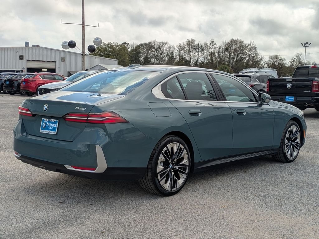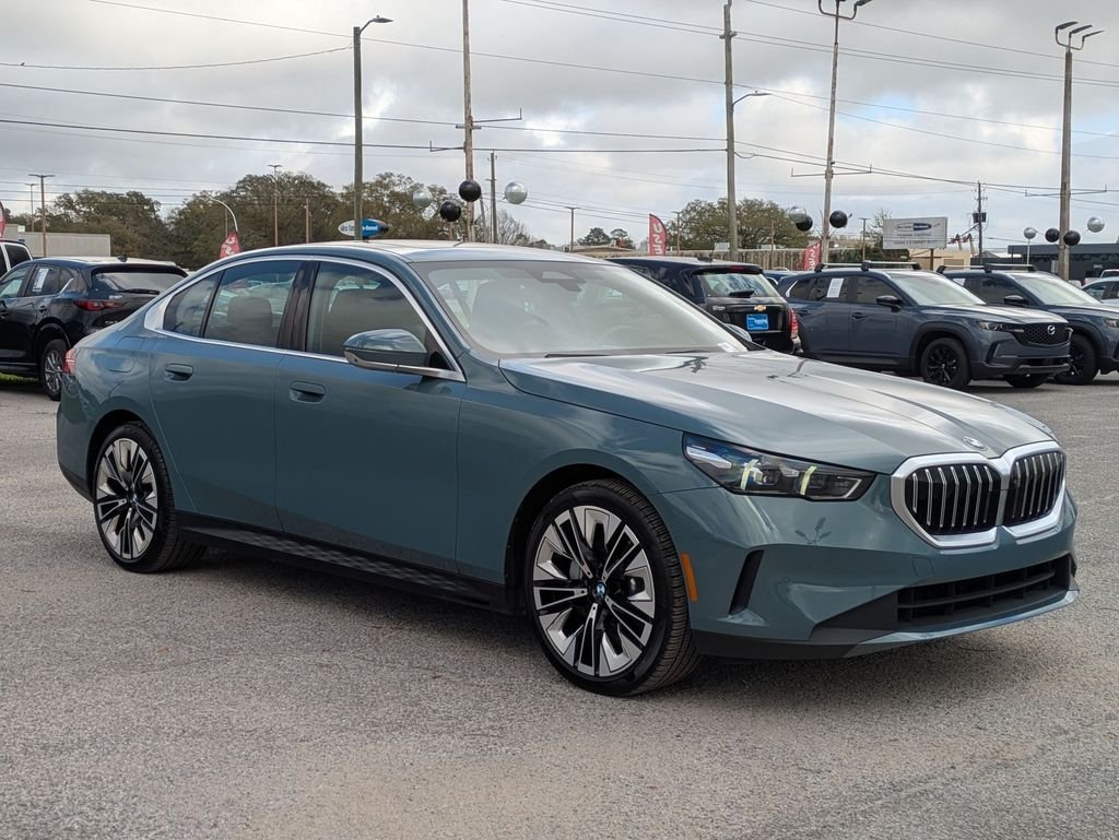 New Price! Priced below KBB Fair Purchase Price! 2024 BMW 5 Series 530i Cape York Green Metallic 530i. Black w/Veganza Perforated & Quilted Upholstery, 12 Speakers, 4-Wheel Disc Brakes, ABS brakes, ACC Stop & Go + Active Driving Assistant, Air Conditioning, Alloy wheels, AM/FM radio: SiriusXM with 360L, Auto tilt-away steering wheel, Auto-dimming door mirrors, Auto-dimming Rear-View mirror, Automatic temperature control, BMW Assist eCall, BMW Curved Display w/HUD, BMW TeleServices, Brake assist, Bumpers: body-color, Connected Package Pro, ConnectedDrive Services, Delay-off headlights, Driver door bin, Driver vanity mirror, Dual front impact airbags, Dual front side impact airbags, Electronic Stability Control, Emergency communication system: BMW Assist eCall, Exterior Parking Camera Rear, Four wheel independent suspension, Front anti-roll bar, Front Bucket Seats, Front Center Armrests, Front dual zone A/C. The vehicle is a used 2024 BMW BMW 5 Series 530i in Cape Yor Green Metallic. RWD.