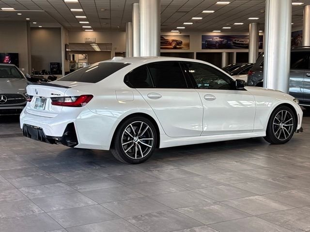 2024 BMW 3 Series M340i Mineral White Metallic Standout Features are. 23/31 City/Highway MPG Equipped with Connected Package Pro, Driving Assistance Package (Active Blind Spot Detection, Active Driving Assistant, Frontal Collision Warning, Lane Departure Warning System, and Park Distance Control), Premium Package (BMW Curved Display w/HUD, Heated Front Seats, and Heated Steering Wheel), 10 Speakers, 4-Wheel Disc Brakes, ABS brakes, Air Conditioning, Alloy wheels, AM/FM radio: SiriusXM, Apple CarPlay & Android Auto Compatibility, Apple CarPlay Compatibility, Auto High-beam Headlights, Auto-dimming door mirrors, Auto-dimming Rear-View mirror, Automatic temperature control, BMW Assist eCall, BMW TeleServices, Brake assist, Bumpers: body-color, Compass, ConnectedDrive Services, Delay-off headlights, Driver door bin, Driver vanity mirror, Dual front impact airbags, Dual front side impact airbags, Dual-Pane Panoramic Moonroof, Electronic Stability Control, Emergency communication system: BMW Assist eCall, Exterior Parking Camera Rear, Four wheel independent suspension, Front anti-roll bar, Front Bucket Seats, Front Center Armrest, Front dual zone A/C, Front reading lights, Fully automatic headlights, Garage door transmitter, Heated door mirrors, Hi-Fi Sound System, High Gloss Fine Wood Ash Grey-Brown Trim, Illuminated entry, Increased Top Speed Limiter, Knee airbag, Leather Shift Knob, Leather steering wheel, Low tire pressure warning, Lumbar Support, Memory seat, Navigation, Navigation System, Occupant sensing airbag, Outside temperature display, Overhead airbag, Panic alarm, Passenger door bin, Passenger vanity mirror, Perforated Sensatec Upholstery, Power door mirrors, Power driver seat, Power Front Seats, Power passenger seat, Power steering, Power Tailgate, Power windows, Radio data system, Radio: AM/FM Audio System, Rain sensing wipers, Rear air conditioning, Rear anti-roll bar, Rear reading lights, Rear seat center armrest, Rear window defroster, Remote Engine Start, Remote keyless entry, Security system, Sensatec Dashboard, SiriusXM w/360L & 1 Year Platinum Plan Subscription, Speed control, Speed-sensing steering, Speed-Sensitive Wipers, Split folding rear seat, Spoiler, Sport Seats, Sport steering wheel, Steering wheel mounted audio controls, Tachometer, Telescoping steering wheel, Tilt steering wheel, Traction control, Trip computer, Turn signal indicator mirrors.