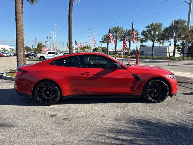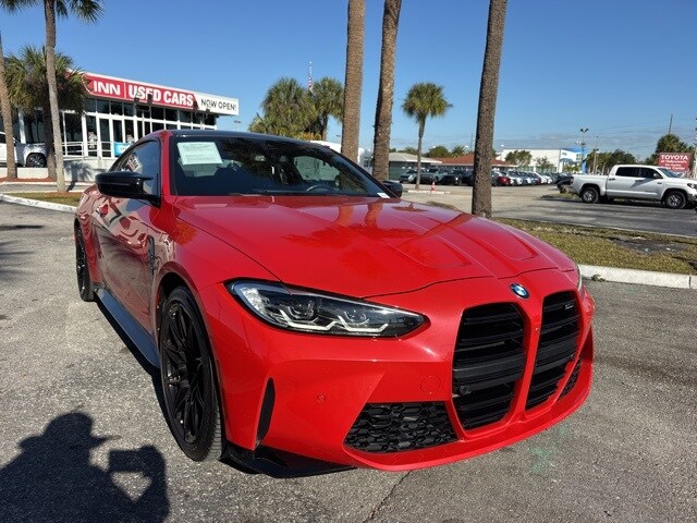 Red Metallic 2024 BMW M4 Competition AWD 8-Speed Automatic Sport 3.0L I6 Turbocharged DOHC 24V LEV3-ULEV70 503hp Backup camera, Bluetooth, leather, navigation, power package, 4-wheel disc brakes, ABS brakes, Connected Package Pro, dual front impact airbags, dual front side impact airbags, emergency communication system: BMW Assist eCall, front anti-roll bar, knee airbag, low tire pressure warning, M Driver's Package, navigation, navigation system, occupant sensing airbag, overhead airbag, power tailgate, rear anti-roll bar. Recent arrival! Changed your mind? Vehicle doesn’t fit your lifestyle? Return it and cancel the deal! PreAuction Sales Center wants to make sure that you love your pre-owned vehicle. Your satisfaction is so important to us that we now offer a 30 day return policy! No questions asked! No reason needed! Just return your pre-owned vehicle to PreAuction Sales Center in Hollywood within 30 days from the date of delivery, with no more than 1,000 additional miles. Feel free to test drive and trade into a different car you feel better suits your needs! Upon return of an eligible vehicle, a 20% re-stocking fee will be assessed, based upon the Cash Price of the Vehicle. The vehicle must be in the same condition as purchased, with no more than 1,000 additional miles. Because of the special nature of this program, this policy only applies to private purchasers; fleet and commercial vehicle sales are not eligible. Additionally this return policy is only applicable to pre-owned vehicles purchased from Pre-auction Sales Center at a Cash Price of $10,000 or more. Eligible vehicles must be delivered during the program period. See a sales associate to receive a written, signed return policy.