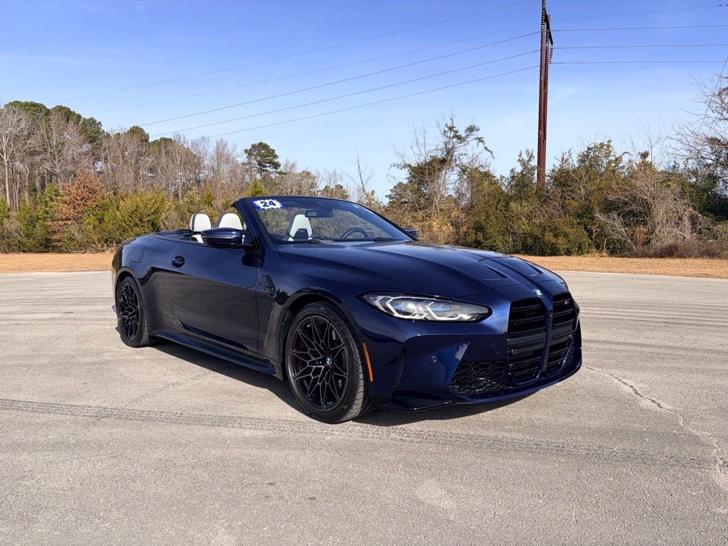 Experience supercar-level performance with open-air luxury in this 2024 BMW M4 Competition xDrive Convertible with only 5,007 miles. Powered by BMW’s ferocious twin-turbo inline-6 and paired with xDrive all-wheel drive, this M4 delivers explosive acceleration, razor-sharp handling, and confidence in all driving conditions—whether the top is up or down. This M4 is loaded with premium features, including the Executive Package and Parking Assistance Package, bringing advanced driver aids, surround-view cameras, and upscale comfort throughout the cabin. The interior is finished with carbon fiber trim, performance-focused M details, and heated and ventilated seats to keep you comfortable year-round. The neck warmer adds extra enjoyment for top-down driving on cooler days. Advanced technology like the Connected Pro Package, Drive Recorder, and full traction control management ensure both safety and performance are always at your fingertips. Striking LED headlights complete the aggressive, unmistakable M presence. If you’re looking for a vehicle that matches your expectations, this is a vehicle that you may be looking for.