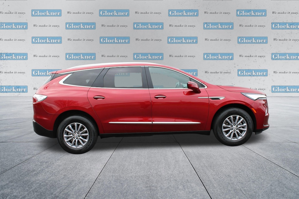 Glockner Chevrolet is proud to offer this outstanding 2024 Buick Enclave in Cherry Red Tintcoat. This 2024 Buick Enclave has passed our comprehensive inspection and comes with the following features; Preferred Equipment Group 1SN (Vehicle Health Management), Enclave Premium Group, 4D Sport Utility, 3.6L V6 SIDI VVT, Cherry Red Tintcoat, 10 Speakers, 18 Aluminum Wheels, 3rd row seats: split-bench, 4-Wheel Disc Brakes, 6-Way Power Front Passenger Seat Adjuster, 7-Passenger Seating, 8-Way Power Driver Seat Adjuster, ABS brakes, Air Conditioning, Alloy wheels, AM/FM radio: SiriusXM with 360L, Auto High-beam Headlights, Auto-dimming door mirrors, Auto-dimming Rear-View mirror, Automatic temperature control, Bose Performance-Enhanced 10-Speaker System, Brake assist, Bumpers: body-color, Compass, Delay-off headlights, Driver 4-Way Power Lumbar Seat Adjuster, Driver door bin, Driver vanity mirror, Dual front impact airbags, Dual front side impact airbags, Electronic Stability Control, Emergency communication system: OnStar and Buick connected services capable, Exterior Parking Camera Rear, Four wheel independent suspension, Front anti-roll bar, Front Bucket Seats, Front Center Armrest, Front dual zone A/C, Front Passenger 4-Way Power Lumbar Seat Adjuster, Front reading lights, Fully automatic headlights, Garage door transmitter, Heads-Up Display, Heated door mirrors, Heated Driver & Front Passenger Seats, Heated front seats, Heated rear seats, Heated steering wheel, Illuminated entry, Leather steering wheel, Low tire pressure warning, Memory seat, Navigation System, Occupant sensing airbag, Outside temperature display, Overhead airbag, Overhead console, Panic alarm, Passenger door bin, Passenger vanity mirror, Perforated Leather-Appointed Seat Trim, Power door mirrors, Power driver seat, Power Liftgate, Power passenger seat, Power steering, Power windows.