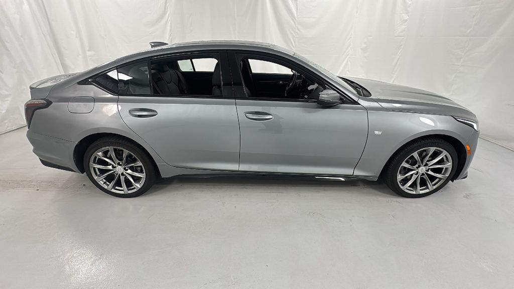 Argent Silver Metallic 2024 Cadillac CT5 Sport 2.0L I4 Turbocharged DOHC 16V LEV3-SULEV30 237hp RWD. This vehicle comes well-equipped with these Cold Weather Package (Heated Driver & Front Passenger Seats and Heated Steering Wheel), Interior Protection Package (LPO) (All-Weather Cargo Mat (LPO) and All-Weather Floor Mats), Lighting Package (Front Cornering LED Lamps, Illuminating Door Handles, and Illuminating Front Sill Plates), Navigation & Bose Premium Audio Package, Preferred Equipment Group 1SE (4-Wheel Antilock 4-Wheel Disc Brakes, Body-Color Heated Pwr-Adjustable Outside Mirrors, Dual Diagonal Color Driver Information Center, Front & Rear Park Assist, HD Rear Vision Camera, Inside Rear-View Auto-Dimming Mirror, Lane Keep Assist w/Lane Departure Warning, LED Reflective Windshield Alert, and Ride & Handling Suspension), Radio: Cadillac User Experience w/Embedded Nav (Bose Performance Series Premium 15-Speaker System and SiriusXM w/360L), Technology Package (12" Diagonal HD Color Reconfigurable Driver Cluster and Head-Up Display), 3 USB Ports, 4-Wheel Disc Brakes, 9 Speakers, ABS brakes, Air Conditioning, Alloy wheels, AM/FM radio: SiriusXM with 360L, Apple CarPlay/Android Auto, Auto High-beam Headlights, Auto-dimming door mirrors, Auto-dimming Rear-View mirror, Automatic Stop/Start w/Disable, Automatic temperature control, Brake assist, Bumpers: body-color, Chrome Wheel Locks (LPO), Compass, Delay-off headlights, Driver 4-Way Power Lumbar Seat Adjuster, Driver door bin, Driver vanity mirror, Dual front impact airbags, Dual front side impact airbags, Electronic Stability Control, Emergency communication system: OnStar and Cadillac connected services capable, Exterior Parking Camera Rear, Four wheel independent suspension, Front anti-roll bar, Front Bucket Seats, Front Center Armrest, Front dual zone A/C, Front Passenger 4-Way Power Lumbar Seat Adjuster, Front Passenger 8-Way Power Seat Adjuster, Front reading lights, Fully automatic headlights, Garage door transmitter, HD Radio, Heated door mirrors, Illuminated entry, Inteluxe Seating Surfaces for the seats.