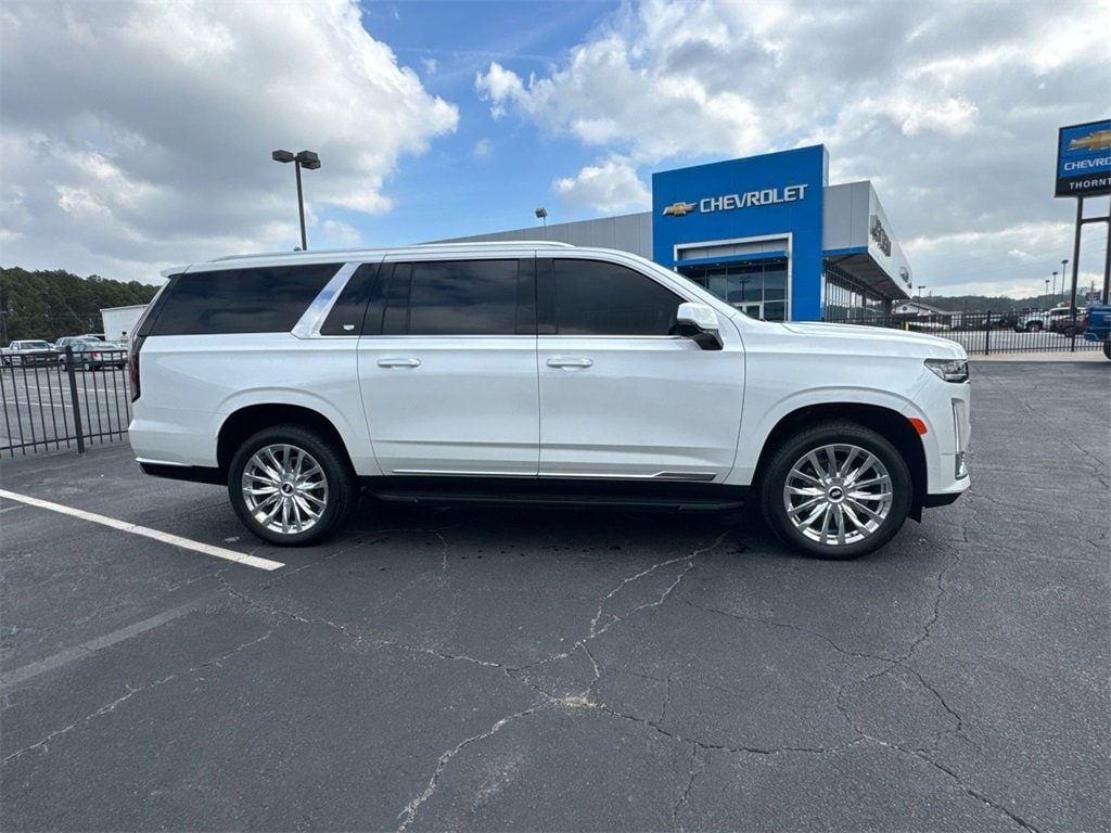 Thank you for considering this beautiful 2024 Cadillac Escalade ESV Premium finished in stunning Crystal White Tricoat with Black Leather. GO WEST to John Thornton Chevrolet, Celebrating 60 Years, Selling Chevy since 1957! Thank you for your interest in John Thornton Chevrolet! We happily serve Lithia Springs, Douglasville, Smyrna, Marietta, Kennesaw, Vining’s, Atlanta, Dallas, Acworth, Villa Rica and proud to be your Chevrolet Dealer for all of West Georgia by providing quality automotive services and unrivaled customer service. Preferred Equipment Group 1SB (Adaptive Cruise Control, AKG Studio 19-Speaker Audio System, Automatic Seat Belt Tightening, Door Lock & Latch Shields, Enhanced Automatic Emergency Braking, Enhanced Automatic Parking Assist, Glass Breakage Sensor, Heated & Ventilated Driver & Front Passenger Seats, Lane Change Alert w/Side Blind Zone Alert, Mechanical Limited-Slip Differential, Power Panoramic Tilt-Sliding Sunroof, Rear Camera Mirror, Rear Camera Mirror Washer, Rear Cross Traffic Alert, Reconfigurable Full-Color Head-Up Display, Reverse Automatic Braking, Running Board Assist Steps, Theft-Deterrent Alarm System, Vehicle Inclination Sensor, and Vehicle Interior Movement Sensor), 16.9 Diagonal OLED Infotainment Screen, 19 Speakers, 2-Presets Memory For Driver Seat Adjuster, 3rd row seats: split-bench, 4-Way Power Driver Lumbar Seat Adjuster, 4-Way Power Front Passenger Lumbar Seat Adjuster, ABS brakes, Air Conditioning, Alloy wheels, AM/FM radio: SiriusXM with 360L, Apple CarPlay/Android Auto, Audio memory, Auto High-beam Headlights, Auto tilt-away steering wheel, Auto-dimming door mirrors, Automatic temperature control, Brake assist, Bumpers: body-color, Compass, Delay-off headlights, Driver door bin, Driver vanity mirror, Dual front impact airbags, Dual front side impact airbags, Electronic Stability Control, Emergency communication system: OnStar and Cadillac connected services capable, Exterior Parking Camera Rear, Four wheel independent suspension, Front anti-roll bar, Front Bucket Seats, Front Center Armrest w/Storage, Front dual zone A/C, Front reading lights, Fully automatic headlights, Garage door transmitter, HD Radio, Heads-Up Display, Heated door mirrors, Heated Driver & Front Passenger Seats, Heated front seats, Heated rear seats, Heated steering wheel, Illuminated entry, Leather Seating Surfaces w/Mini-Chevron Perf Inserts, Low tire pressure warning, Memory seat, Navigation System, Occupant sensing airbag, Outside temperature display, Overhead airbag, Overhead console, Panic alarm, Passenger door bin, Passenger vanity mirror, Power door mirrors, Power driver seat, Power Liftgate, Power moonroof, Power passenger seat, Power steering, Power windows.