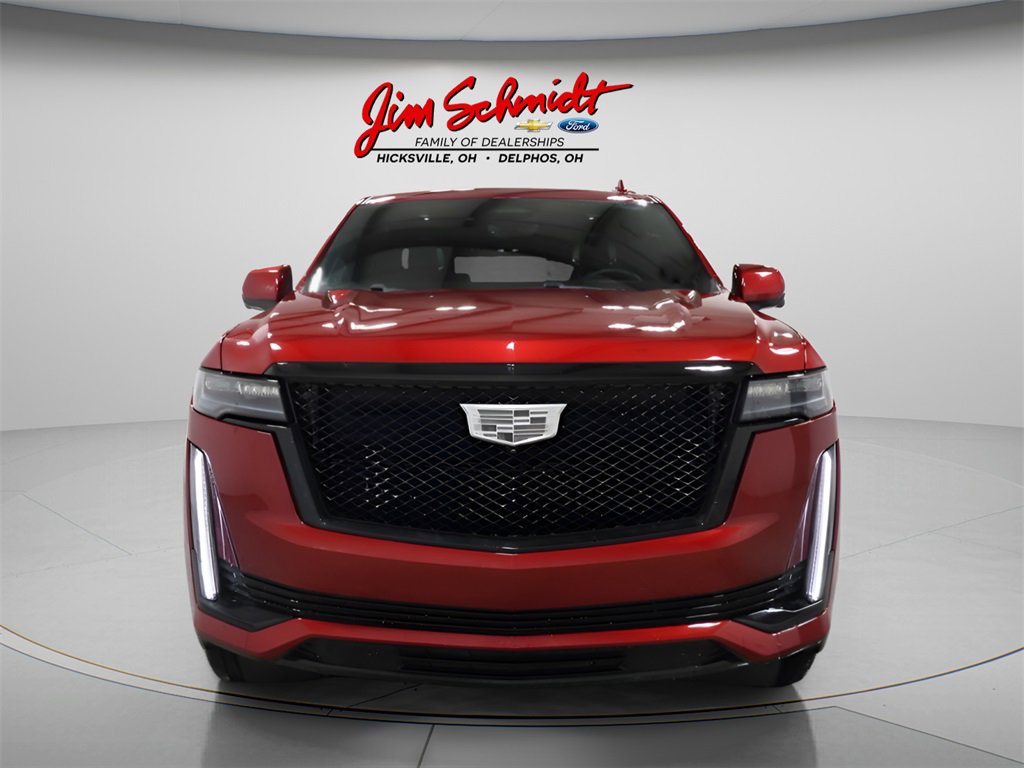 CARFAX One-Owner. Apple Carplay / Android Auto, Serviced, Inspected & fully detailed, 16.9 Diagonal OLED Infotainment Screen, 2-Presets Memory For Driver Seat Adjuster, 2-Speed Active Transfer Case, 3rd row seats: split-bench, 4-Way Power Driver Lumbar Seat Adjuster, 4-Way Power Front Passenger Lumbar Seat Adjuster, 8-Way Power Driver Seat Adjuster, 8-Way Power Front Passenger Seat Adjuster, A/V remote, ABS brakes, Adaptive Cruise Control, Adaptive suspension, Air Conditioning, Air Ride Adaptive Suspension, AKG Studio Reference 36-Speaker Audio System, Alloy wheels, AM/FM radio: SiriusXM with 360L, Apple CarPlay/Android Auto, Audio memory, Auto High-beam Headlights, Auto tilt-away steering wheel, Auto-dimming door mirrors, Automatic Seat Belt Tightening, Automatic temperature control, Black Roof Rack Cross Rails, Body-Color Door Handles, Brake assist, Bumpers: body-color, Compass, Cruise Control, Delay-off headlights, Door auto-latch, Door Lock & Latch Shields, Driver door bin, Driver vanity mirror, Dual front impact airbags, Dual front side impact airbags, Electronic Limited-Slip Differential, Electronic Stability Control, Emergency communication system: OnStar and Cadillac connected services capable, Enhanced Automatic Emergency Braking, Enhanced Automatic Parking Assist, Exterior Parking Camera Rear, Extra Capacity Cooling System, Floor Console w/Covered Storage, Four wheel independent suspension, Front anti-roll bar, Front Auxiliary 12-volt Power Outlet, Front Bucket Seats, Front Center Armrest w/Storage, Front dual zone A/C, Front reading lights, Full Semi-Aniline Leather Seat Trim, Fully automatic headlights, Garage door transmitter, Genuine wood console insert, Genuine wood dashboard insert, Genuine wood door panel insert, Glass Breakage Sensor, Gloss Black Escalade Nameplate (LPO), HD Radio, Headphones, Heads-Up Display, Heated & Ventilated Driver & Front Passenger Seats, Heated door mirrors, Heated Driver & Front Passenger Seats, Heated front seats, Heated rear seats, Heated steering wheel, Heavy-Duty Trailering Package, Hitch Guidance w/Hitch View, Illuminated entry, Illuminating Front & Rear Sill Plates, Integrated Trailer Brake Controller, intermittent wipers, Leather steering wheel, Low tire pressure warning, Magnetic Ride Control Suspension, Memory seat, Monochrome Cadillac Emblems (LPO), Navigation System, Occupant sensing airbag, Onyx Package (LPO), Outside temperature display, Overhead airbag, Overhead console, Panic alarm, Passenger door bin, Passenger vanity mirror.