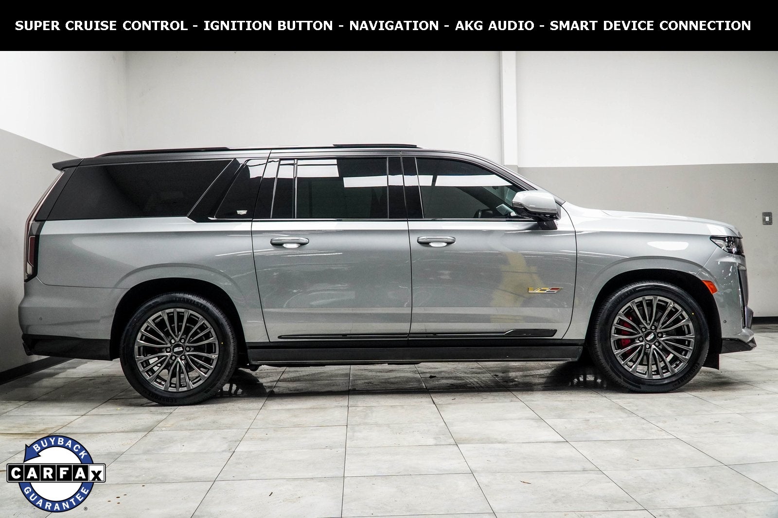 Argent Silver Metallic 2024 Cadillac Escalade ESV V-Series AWD 10-Speed Automatic with Overdrive 6.2L V8 Supercharged AWD, Active Noise Cancellation, Adaptive Cruise Control, Air Ride Adaptive Suspension, AKG Studio Reference 36-Speaker Audio System, All-Weather Floor Liner Package (LPO), All-Weather Integrated Cargo Liner (LPO), Automatic Seat Belt Tightening, Body-Color Door Handles, Door Lock & Latch Shields, Electronic Limited-Slip Differential, Enhanced Automatic Emergency Braking, Enhanced Automatic Parking Assist, Floor Console w/Covered Storage, Floor Liner Package (LPO), Front Auxiliary 12-volt Power Outlet, Glass Breakage Sensor, Heated & Ventilated Driver & Front Passenger Seats, Hitch Guidance w/Hitch View, Illuminating Front & Rear Sill Plates, Integrated Trailer Brake Controller, Navigation System, Platinum Interior Trim, Power Lumbar Massage Driver Seat, Power Lumbar Massage Front Passenger Seat, Power Panoramic Tilt-Sliding Sunroof, Power-Retractable Assist Steps, Preferred Equipment Group 1SD, Rear Camera Mirror, Rear Camera Mirror Washer, Rear Cross Traffic Alert, Rear Seat Entertainment System, Reconfigurable Full-Color Head-Up Display, Reverse Automatic Braking, Smart Trailer Integration Indicator, Soft Closing Front & Rear Doors, Theft-Deterrent Alarm System, Touring Package, Trailer Side Blind Zone Alert, Vehicle Inclination Sensor, Vehicle Interior Movement Sensor. The vehicle is Pre-Owned, is not new, dents, scratches, wear, tear, previous repairs, paintwork, bodywork, defects, hidden damages, rust and imperfections exists and should be expected. We may or may not have all the keys, owner's manuals, and floor mats, but we will be happy to obtain extra ones for you at our cost.