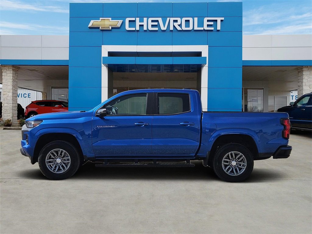 Recent Arrival! Colorado LT, 4D Crew Cab, 2.7L I4 Turbocharged DOHC 16V LEV3-ULEV50 237hp, 8-Speed Automatic, RWD, Glacier Blue Metallic, Black Cloth. Odometer is 10011 miles below market average! Glacier Blue Metallic 2024 Chevrolet Colorado LT 2.7L I4 Turbocharged DOHC 16V LEV3-ULEV50 237hp 8-Speed Automatic RWD Advanced Trailering Package (Automatic Locking Rear Differential and Trailering App), Heavy-Duty Trailering Package (Integrated Trailer Brake Controller), LT Convenience Package (Driver & Front Passenger Illuminated Visors, Dual-Zone Automatic Air Conditioning, Electronic Automatic Cruise Control, EZ-Lift & Lower Tailgate, Front LED Fog Lamps, Manual Rear-Sliding Window, Rear-Window Electric Defogger, StowFlex Tailgate Storage Compartment, Tailgate Keyed Cylinder Lock, and Tilt & Telescoping Steering Column), Preferred Equipment Group 2LT (Automatic Emergency Braking, Chevy Safety Assist, Following Distance Indicator, Forward Collision Alert, Front Pedestrian & Bicyclist Braking, IntelliBeam Automatic High Beam On/Off, and Lane Keep Assist w/Lane Departure Warning), Safety Package (Heated Power-Adjustable Outside Mirrors, Rear Cross Traffic Braking, and Rear Park Assist), Colorado LT, 4D Crew Cab, 2.7L I4 Turbocharged DOHC 16V LEV3-ULEV50 237hp, 8-Speed Automatic, RWD, Glacier Blue Metallic, Black Cloth.