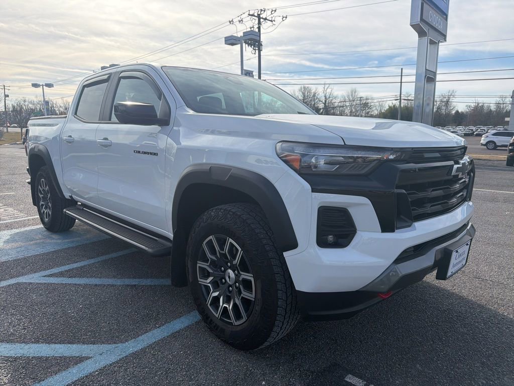 2024 Chevrolet Colorado Z71 Summit White 4WD 8-Speed Automatic 2.7L I4 Turbocharged DOHC 16V LEV3-ULEV50 310hp 4WD, 220 Amp Generator, 3.42 Rear Axle Ratio, 4-Way Manual Passenger Seat Adjuster, 4-Wheel Disc Brakes, 6 Speakers, 6-Speaker Audio System Feature, 6-Way Manual Driver Seat Adjuster, 8-Way Power Driver Seat Adjuster, ABS brakes, Adaptive Cruise Control, Advanced Trailering Package, Air Conditioning, Alloy wheels, AM/FM radio: SiriusXM, Apple CarPlay/Android Auto, Auto High-beam Headlights, Automatic Emergency Braking, Black Nameplates (LPO), Blind Zone Steering Assist w/Trailering, Bose Premium 7-Speaker Audio System Feature, Brake assist, Bumpers: body-color, Chevy Safety Assist, Cloth/Evotex Seat Trim, Compass, Delay-off headlights, Driver door bin, Driver vanity mirror, Dual front impact airbags, Dual front side impact airbags, Dual-Zone Automatic Air Conditioning, Electronic Automatic Cruise Control, Electronic Stability Control, EZ-Lift & Lower Tailgate, Following Distance Indicator, Forward Collision Alert, Front anti-roll bar, Front Bucket Seats, Front Center Armrest, Front fog lights, Front License Plate Kit, Front Passenger Seatback Map Pocket, Front Pedestrian & Bicyclist Braking, Front reading lights, Front wheel independent suspension, HD Surround Vision, Heated door mirrors, Heated Driver & Front Passenger Seats, Heavy-Duty Trailering Package, Illuminated entry, Inside Rear-View Auto-Dimming Mirror, Integrated Trailer Brake Controller, IntelliBeam Automatic High Beam On/Off, Lane Keep Assist w/Lane Departure Warning, Low tire pressure warning, Navigation System, Occupant sensing airbag, Outside temperature display, Overhead airbag, Overhead console, Panic alarm, Passenger door bin, Passenger vanity mirror, Power door mirrors, Power Driver Lumbar Control Seat Adjuster, Power steering, Power windows.