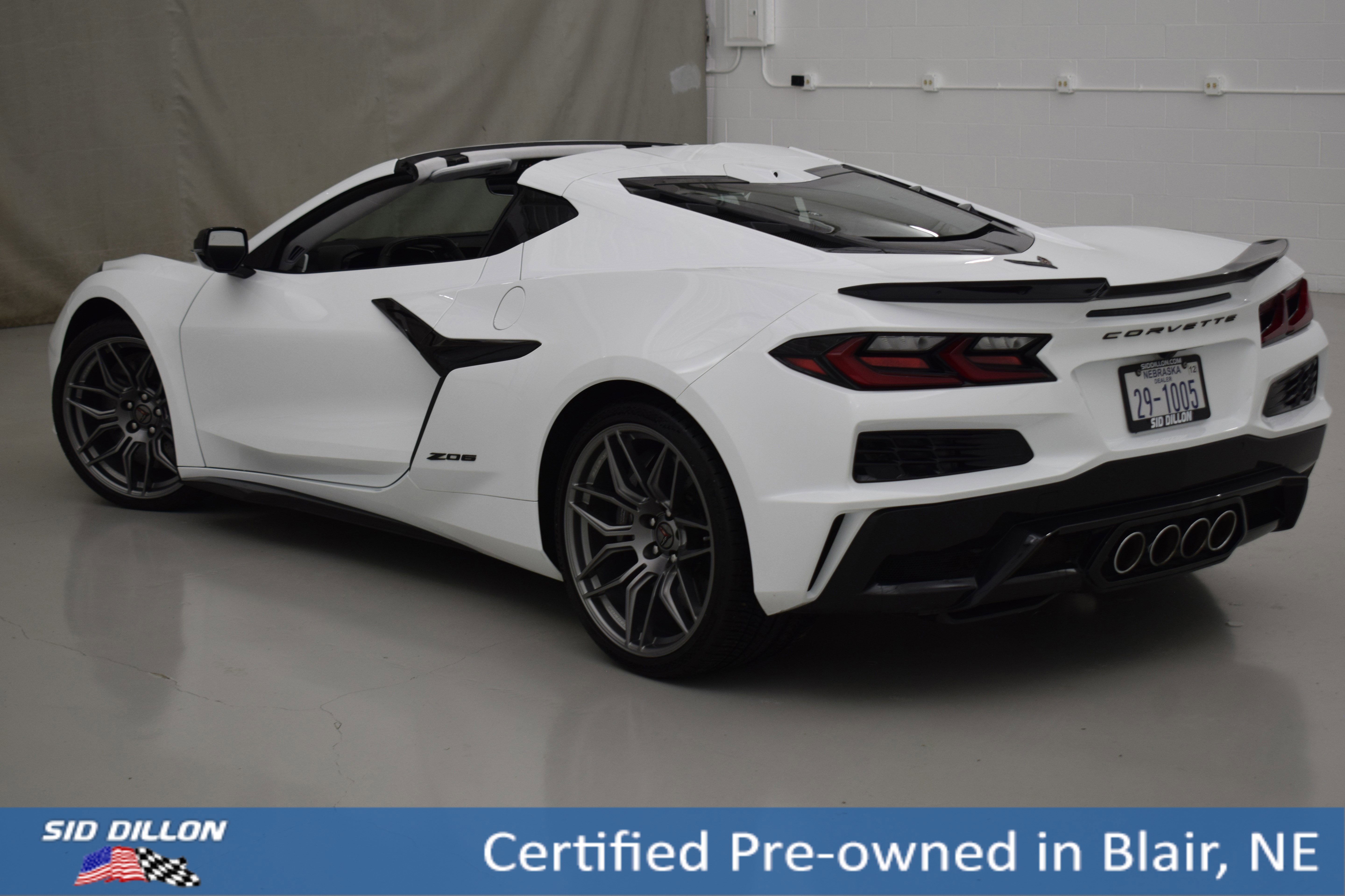 This Chevrolet Corvette has a dependable Gas V8 5.5L/ engine powering this Automatic transmission. Wheels, 20 x 10 (50.8 cm x 25.4 cm) front and 21 x 13 (53.3 cm x 33 cm) rear spider design, Titanium Satin forged aluminum (STD), transmission, 8-speed dual clutch, includes manual and auto modes (STD), tires, 275/30ZR20 front and 345/25ZR21 rear, blackwall, high performance (STD), Sky Cool Gray Napa leather seating surfaces with perforated inserts seats are Jet Black when (AE4) Competition seats are ordered. Seats are two-tone. This Chevrolet Corvette comes equipped with these options. Stop by today. Come in for a quick visit at Sid Dillon Chevrolet Blair, 2261 S Hwy 30, Blair, NE 68008 to claim your Chevrolet Corvette!