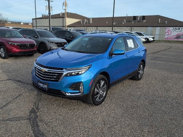 Drive Forever limited lifetime engine and transmission protection on all eligible new vehicles. Every new vehicle includes a complimentary rental vehicle when you have any Service completed for three full years. Conklin Automotive Salina New and Used Car Dealership near Manhattan Kansas. This 2024 Chevrolet Equinox Premier is a remarkable SUV that combines style, performance, and cutting-edge technology. With its sleek Blue exterior and premium features, this Equinox is the perfect blend of sophistication and capability. Under the hood, this Equinox boasts a 1.5L DOHC engine paired with a 6-Speed Automatic Electronic with Overdrive transmission and AWD, delivering an impressive 24 city/30 highway MPG. The combination of power and efficiency makes this Equinox an exceptional choice for your daily commute or weekend adventures. The interior of this Equinox Premier is designed with your comfort and convenience in mind. The Perforated Leather-Appointed Seat Trim and heated front seats provide a luxurious driving experience, while the Chevrolet Infotainment 3 Plus system keeps you connected and entertained. The Memory seat feature allows you to customize your driving position for a personalized experience every time you get behind the wheel. Safety is also a top priority in this Equinox, with features like Dual front impact airbags, Dual front side impact airbags, Overhead airbag, and Occupant sensing airbag providing peace of mind on the road. The Electronic Stability Control and Traction Control systems help you maintain control in adverse conditions, while the Brake Assist and 4-Wheel Disc Brakes ensure confident and responsive stopping power. Whether you're looking for a spacious family SUV or a versatile companion for your active lifestyle, this 2024 Chevrolet Equinox Premier is an exceptional choice. Experience the perfect blend of style, performance, and technology by scheduling a test drive today.