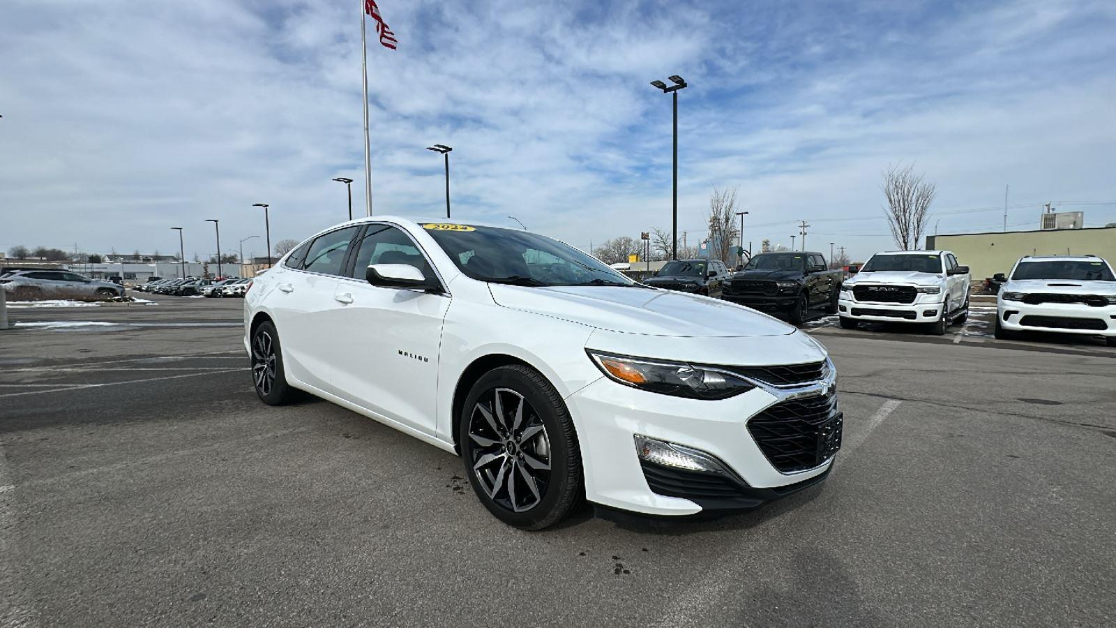 Carfax No Accidents! Carfax One Owner! This 2024 Chevrolet Malibu RS is Summit White with Jet Black interior complete with these key Features. The 2024 Chevrolet Malibu RS delivers bold design, efficient performance, and advanced technology in a sleek midsize sedan that stands out from the crowd. With its RS Sport Edition, this Malibu features aggressive black exterior accents, 18-inch aluminum wheels, and a confident, modern stance that turns heads on every drive. Under the hood, the Malibu RS is powered by a 1.5L turbocharged engine paired with a smooth CVT, providing an ideal balance of responsive performance and excellent fuel efficiency-perfect for daily commuting and long highway drives alike. Step inside the refined cabin and enjoy premium cloth seating, a leather-wrapped steering wheel, and a driver-focused layout designed for comfort and convenience. Stay connected with the Chevrolet Infotainment System, featuring a large touchscreen display, Apple CarPlay & Android Auto, Bluetooth, and multiple USB ports to keep you and your passengers powered up and entertained. Safety comes standard with Chevy Safety Assist, including Automatic Emergency Braking, Forward Collision Alert, Lane Keep Assist with Lane Departure Warning, Front Pedestrian Braking, and Following Distance Indicator, giving you added confidence on every journey. With its sporty RS styling, advanced safety features, impressive fuel economy, and comfortable interior, the 2024 Chevrolet Malibu RS is an excellent choice for drivers seeking a stylish, reliable, and tech-savvy sedan at a great value. The 2024 Chevy Malibu RS proves that sophistication, sportiness, and practicality can come together in one standout sedan-ready for wherever the road takes you.