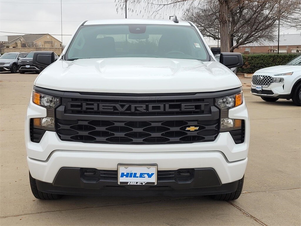 2024 Summit White Chevrolet Silverado 1500 Custom 8-Speed Automatic 2.7L I4 Turbocharged DOHC 16V LEV3-SULEV30 310hp. Odometer is 15171 miles below market average! Non smoker, adult owned, power windows / power door locks, back up camera, Silverado 1500 Custom, 4D Crew Cab, 2.7L I4 Turbocharged DOHC 16V LEV3-SULEV30 310hp, 8-Speed Automatic, RWD, Summit White, Black Cloth. *Prices do not include reconditioning costs or CPO costs when applicable. Hiley Mazda Volkswagen is located at I-20 and Collins in Arlington. We are right in the middle of the Metroplex, just 20 minutes from Dallas and 20 minutes from Ft. Worth.