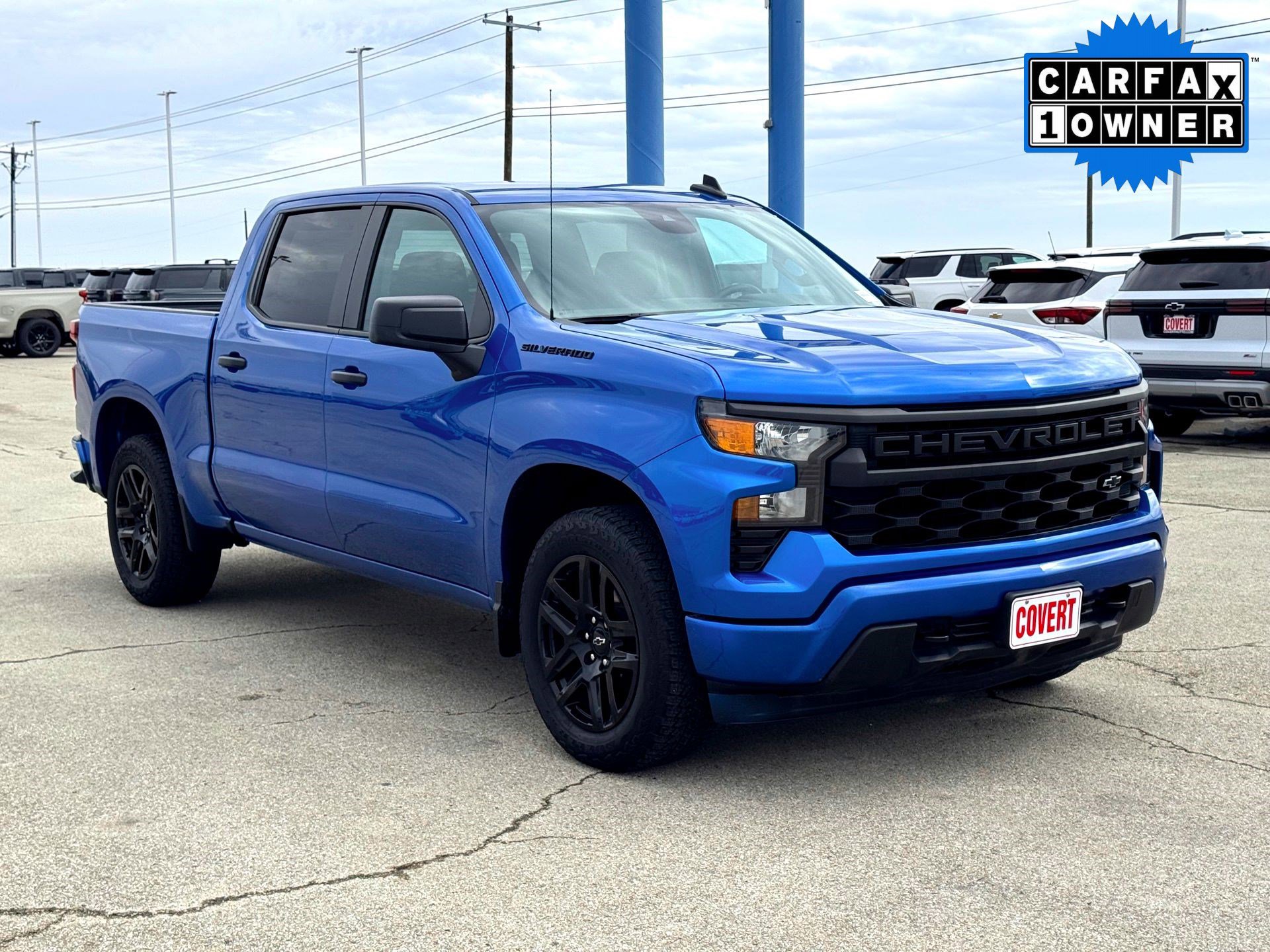 Priced below KBB Fair Purchase Price! Odometer is 6792 miles below market average! 2024 Chevrolet Silverado 1500 4D Crew Cab 2.7L I4 Turbocharged DOHC 16V LEV3-SULEV30 310hp Glacier Blue Metallic. RWD, Clean Carfax, non smoker, one owner. Please come out and be a part of the Covert family.