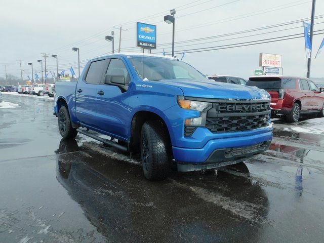 The all new Marshall Chevrolet now open in Carrollton, KY. Right across the Ohio river from Madison & Vevay Indiana, and only a short drive from Louisville, Lexington, Cincinnati and Florence. CARFAX One-Owner. 2024 Chevrolet Silverado 1500 Custom 4D Crew Cab Glacier Blue Metallic 4WD 2.7L I4 Turbocharged DOHC 16V LEV3-SULEV30 310hp 8-Speed Automatic. At Marshall Chevrolet, our commitment to our customers produces one of the most valuable assets – and that's trust! We know you can't buy trust. You have to earn it! People have come to know that they can trust Marshall for the right selection, the right price, the right service and the latest innovations. That's why 92% of our customers are either repeat, reputational or referral. That's the Power of Trust! With over 75 years of automotive excellence we offer a commitment to an open, honest and fair shopping experience. As an auto group we represent over 7 different brands from Ford, Toyota, Chrysler, Dodge, Jeep, Ram and other brands.