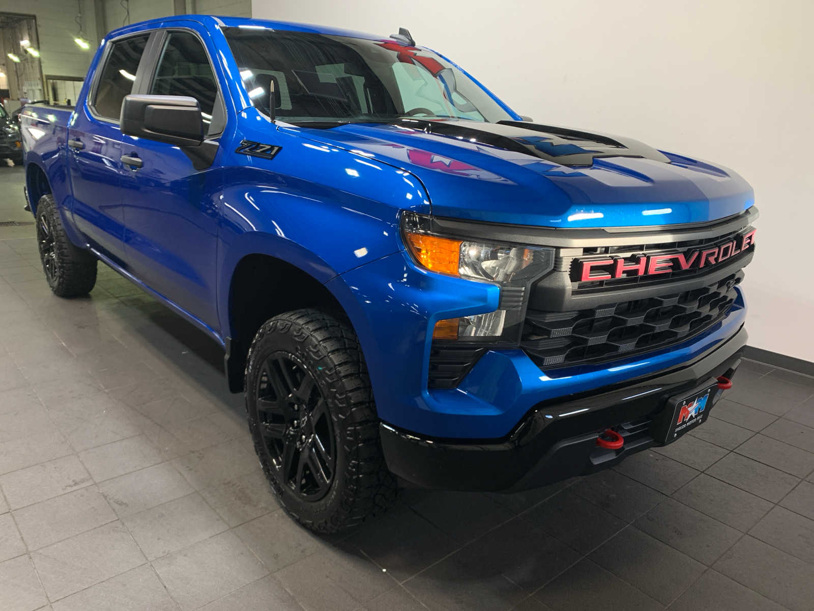 Nice. Lane Keeping Assist, WiFi Hotspot, Onboard Communications System, Back-Up Camera, Bed Liner, Hitch, Tailgate, Multi-Flex, Wheels, 20 x 9 (50.8 CM x 22.9 CM). Transmission, 10-Speed Automatic, Engine. Chevrolet Custom Trail Boss with Glacier Blue Metallic exterior and Jet Black interior features a 8 Cylinder Engine with 310 HP at 5600 RPM*. Originally bought here, Local Trade-In AutoCheck One Owner Nice.
