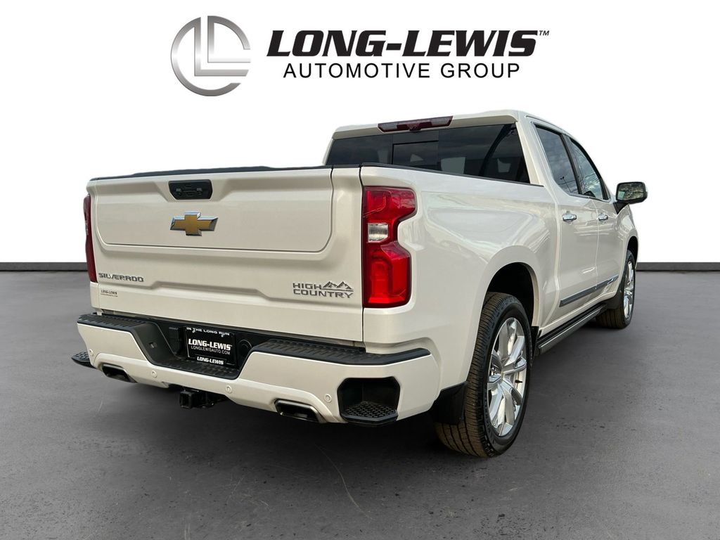 2024 Chevrolet Silverado 1500 High Country Iridescent Pearl Tricoat High Country 4WD 10-Speed Automatic EcoTec3 6.2L V8 10-Speed Automatic, 4WD, Jet Black/Umber Leather, 10-Way Power Driver Seat w/Lumbar, 10-Way Power Passenger Seat Adjuster w/Lumbar, 12.3" Multicolor Reconfigurable Digital Display, 120-Volt Bed Mounted Power Outlet, 120-Volt Interior Power Outlet, 15" Diagonal Multicolor Head-Up Display, 170 Amp Alternator, 2 USB Data Ports, 2nd Row Heated Outboard Seats, 3.23 Rear Axle Ratio, 4-Wheel Disc Brakes, 7 Speakers, ABS brakes, Adaptive Cruise Control, Adaptive Ride Control Suspension, Air Conditioning, All-Weather Floor Liner (LPO), Alloy wheels, AM/FM radio: SiriusXM with 360L, Auto High-beam Headlights, Auto-dimming door mirrors, Auto-Dimming Inside Rear-View Mirror, Auto-dimming Rear-View mirror, Auto-Locking Rear Differential, Automatic temperature control, Bed View Camera, Bluetooth For Phone, Body-Color Painted Mirror Caps, Bodyside moldings, Brake assist, Bumpers: body-color, Chevrolet Connected Access Capable, Chevytec Spray-On Black Bedliner, Chrome Assist Steps, Chrome Recovery Hooks, Color-Keyed Carpeting Floor Covering, Compass, Deep-Tinted Glass, Delay-off headlights, Driver door bin, Driver Memory, Driver vanity mirror, Dual Active Exhaust, Dual Exhaust w/Polished Outlets, Dual front impact airbags, Dual front side impact airbags, Dual Rear USB Ports (Charge Only), Electric Rear-Window Defogger, Electrical Steering Column Lock, Electronic Stability Control, Electronic Transmission Range Selector Shifter, Enhanced Automatic Emergency Braking, EZ Lift Power Lock & Release Tailgate, Floor Mounted Center Console, Following Distance Indicator, Forward Collision Alert, Front anti-roll bar, Front Bucket Seats, Front Carpeted Floor Mats, Front Center Armrest, Front dual zone A/C, Front fog lights, Front LED Fog Lamps, Front Pedestrian Braking, Front Rain-Sensing Wipers, Front reading lights, Front wheel independent suspension, Fully automatic headlights, Garage door transmitter, Genuine wood console insert, Genuine wood dashboard insert, Genuine wood door panel insert, HD Surround Vision, Heated door mirrors, Heated Driver & Front Outboard Passenger Seats, Heated front seats, Heated rear seats, Heated Steering Wheel, Heated steering wheel, High Capacity Suspension Package, High Country Premium II Package, High Country Premium Package, Hitch Guidance, Hitch Guidance w/Hitch View, Illuminated entry, In-Vehicle Trailering System App, Integrated Trailer Brake Controller, IntelliBeam Automatic High Beam On/Off, Keyless Open & Start, Lane Keep Assist w/Lane Departure Warning, LED Cargo Area Lighting, Low tire pressure warning, Memory seat, Multi-Flex Tailgate, Multi-Flex Tailgate Step Lights (LPO), Occupant sensing airbag, OnStar & Chevrolet Connected Services Capable, Outside Heated Power-Adjustable Mirrors, Outside temperature display, Overhead airbag, Overhead console, Panic alarm, Passenger door bin, Passenger vanity mirror.