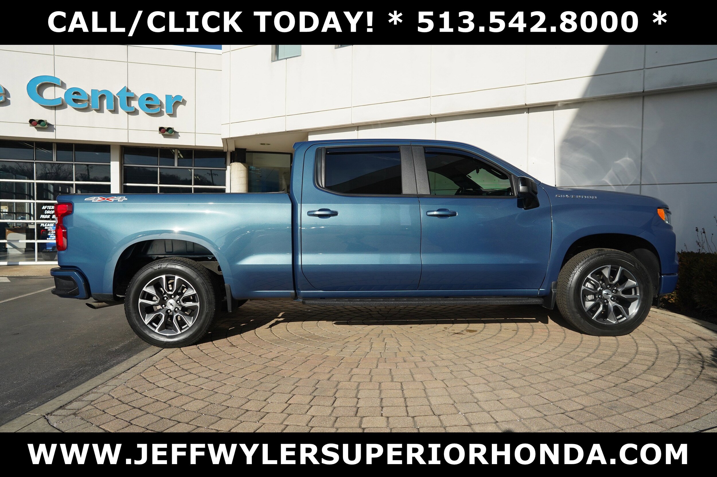 Jeff Wyler Superior Honda is pumped up to offer this great 2024 Chevrolet Silverado 1500 RST in Lakeshore Blue Metallic. Bluetooth, leather, clean Carfax...no accidents, remainder of factory warranty, recent Superior trade, and one owner. Convenience Package (10-Way Power Driver Seat w/Lumbar, 120-Volt Bed Mounted Power Outlet, 120-Volt Interior Power Outlet, Dual Rear USB Ports (Charge Only), Dual-Zone Automatic Climate Control, Electric Rear-Window Defogger, Heated Driver & Front Outboard Passenger Seats, Heated Steering Wheel, Keyless Open & Start, Remote Vehicle Starter System, Theft Deterrent System (Unauthorized Entry), and Wrapped Steering Wheel), High Capacity Suspension Package, Preferred Equipment Group 1SP (12.3" Multicolor Reconfigurable Digital Display, 6-Speaker Audio System, All-Star Edition, Auto-Locking Rear Differential, Bluetooth For Phone, Chevrolet Connected Access Capable, Color-Keyed Carpeting Floor Covering, Deep-Tinted Glass, Electrical Steering Column Lock, Electronic Cruise Control, EZ Lift Power Lock & Release Tailgate, Front Frame-Mounted Black Recovery Hooks, Front LED Fog Lamps, Front Rubberized Vinyl Floor Mats, HD Rear Vision Camera, Heated Power-Adjustable Outside Mirrors, High Gloss Black Mirror Caps, Inside Rear-View Mirror w/Tilt, LED Cargo Area Lighting, OnStar & Chevrolet Connected Services Capable, Power Front Windows w/Driver Express Up/Down, Power Front Windows w/Passenger Express Down, Power Rear Windows w/Express Down, Rear 60/40 Folding Bench Seat (Folds Up), Rear Rubberized-Vinyl Floor Mats, SiriusXM w/360L, Standard Suspension Package, Trailering Package (Hitch Guidance), Silverado 1500 RST, 4D Crew Cab, EcoTec3 5.3L V8, 10-Speed Automatic, 4WD, Lakeshore Blue Metallic. Our pre-owned vehicles are put through a rigorous 167-point quality assurance inspection along with an average amount of over $1,400.00 spent to recondition each vehicle so we can be sure to deliver you the highest quality vehicle like you deserve! Online price does not include WY.