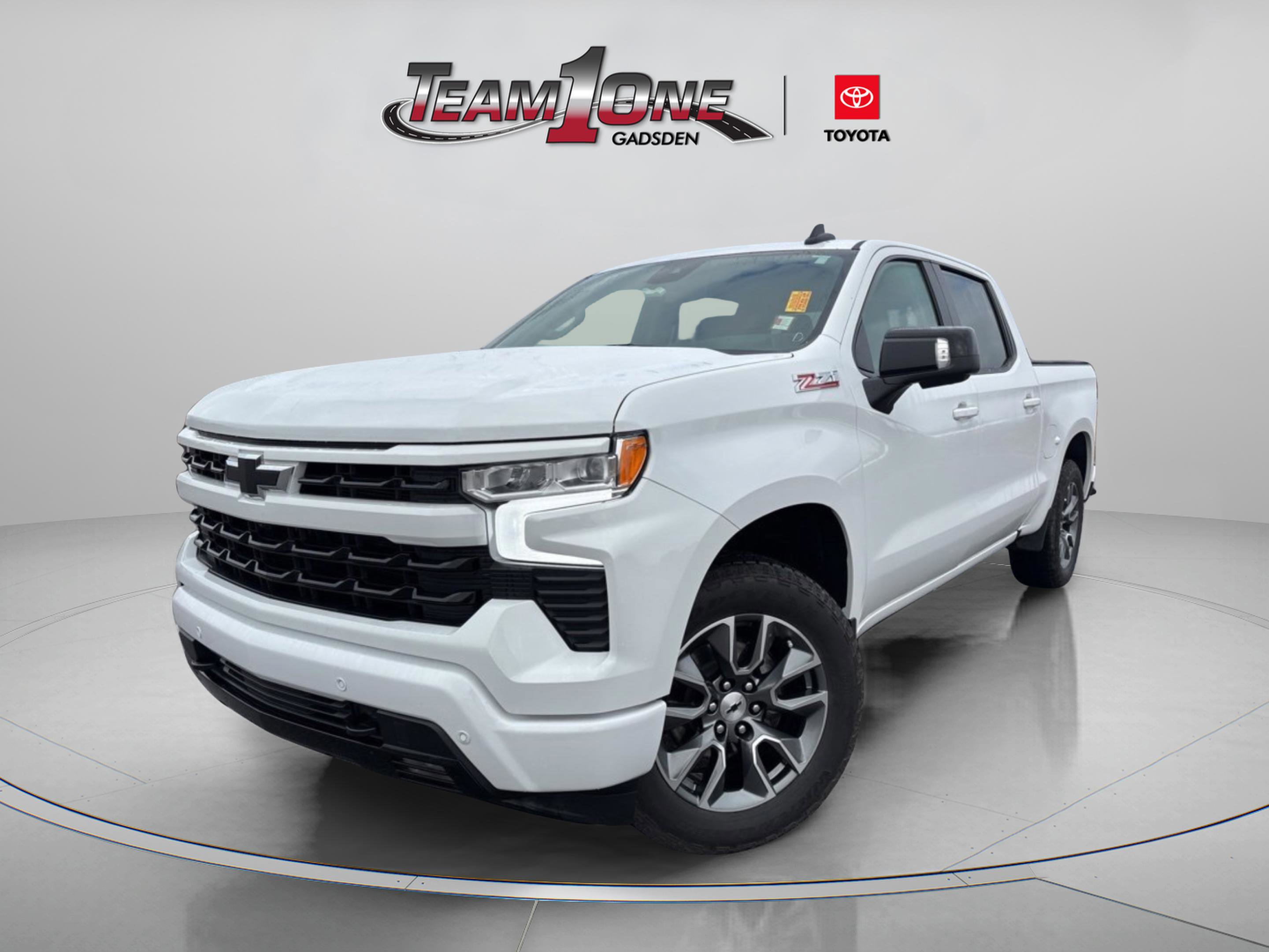 Team One Toyota welcomes drivers and car buyers from Gadsden, Albertville, Boaz, Anniston and Oxford, AL to our full-service Toyota dealership. We proudly serve the local communities from our Rainbow City AL dealership location with not only an extensive selection of the very latest vehicles from Toyota, but also with pre-owned car sales and financing, plus professional auto service. CALL 256-413-4456 or visit teamonetoyota.com. 2024 Chevrolet Silverado 1500 RST. Contactless Purchase, Free Home Drop-off, Free Test Drive at Home, Private Dealership Appointments, Virtual Appointments, Custom Online Financing. Shop, visit or contact us today at 256-413-4456 for your Toyota auto needs around Gadsden, Anniston and Oxford, AL. Teamonetoyota.com.