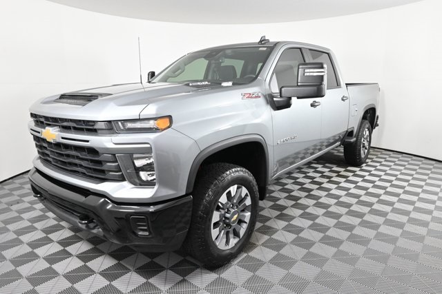 Sterling Gray Metallic 2024 Chevrolet Silverado 2500HD Custom 6.6L V8 4WD. CARFAX One-Owner. Leather Seating. Back Up Camera. Bluetooth Enabled. Automatic Rain-Sensing Wipers. Automatic-Dimming Rearview Mirror with HomeLink. Power Seats. Lane Assist (Lane Keeping System). Front Assist (Forward Collision Warning and Automatic Braking with Pedestrian and Cyclist Monitoring). Rear Cross Traffic Alert. Rear Parking Sensors. Keyless Entry. 10-Speed Automatic. 4WD. Black Cloth. 10-Way Power Driver Seat Adjuster with Lumbar. 120-Volt Interior Power Outlet. 170 Amp Alternator. 2-Speed Electronic Shift Transfer Case. 3.5" Diagonal Monochromatic Display DIC. Black Mirror Caps. Bluetooth for Phone. Chevrolet Connected Access Capable. Color-Keyed Carpeting Floor Covering. Compass. Custom Convenience Package. Custom Value Package. CX Safety Package. Deep-Tinted Glass. Electric Rear-Window Defogger. Electronic Cruise Control with Set and Resume Speed. EZ Lift Power Lock and Release Tailgate. Front Rubberized Vinyl Floor Mats. Fully automatic headlights. HD Rear Vision Camera. Heated and Auto-Dimming Vertical Trailering Mirrors. Heated Vertical Trailering Mirrors. Hill Descent Control. Integrated Trailer Brake Controller. Lane Change Alert with Side Blind Zone Alert. LED Cargo Area Lighting. Locking Tailgate. Manual Tailgate Function with No EZ Lift. Manual Tilt-Wheel Steering Column. Off-Road Suspension. OnStar and Chevrolet Connected Services Capable. Power Door Locks. Power Front Windows with Driver Express Up/Down. Power Front Windows with Passenger Express Down. Power Rear Windows with Express Down. Preferred Equipment Group 1CX. Push Button Start. Rear 60/40 Folding Bench Seat (Folds Up). Rear Cross Traffic Alert. Rear Park Assist. Rear Rubberized Vinyl Floor Mats. Remote Keyless Entry. Remote Vehicle Starter System. SiriusXM with 360L. Standard Tailgate. Suspension Package. Unauthorized Entry Theft-Deterrent System.