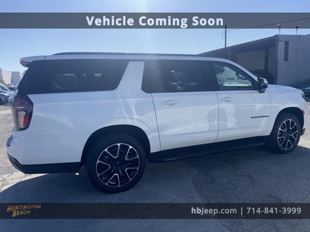 2024 Chevrolet Suburban Summit White 10-Speed Automatic with Overdrive EcoTec3 5.3L V8 Bluetooth wireless / hands free, panoramic moonroof/sunroof, navigation/GPS, back up camera, 3rd row seats, leather, 10-way power driver & passenger seat adjusters, 1st & 2nd row color-keyed carpeted floor mats, 2nd row power release 60/40 split-folding bench seat, 3rd row power-folding split-bench, adaptive cruise control, auto-dimming inside rear-view mirror, Bose 9-speaker stereo audio system feature, bright front & rear door sill plates, color-keyed carpeting floor covering, driver & front outboard passenger airbags, driver alert package, dual-pane power panoramic sunroof, enhanced automatic emergency braking, enhanced driver information center, floor console w/storage area, hands-free rear power programmable liftgate, HD surround vision, heated 2nd row outboard seats, heated driver & front passenger seats, heated steering wheel, Infotainment display, lane change alert w/side blind zone alert, LED daytime running lamps, license plate front mounting package, luxury package, memory settings, memory settings for driver, navigation system, outside heated power-adjustable mirrors, power tilt & telescopic steering column, Preferred Equipment Group 1SP, rear cross traffic alert, rear pedestrian alert, remote start, SiriusXM w/360L, universal home remote, wireless charging, wrapped steering wheel. This vehicle was a prior rental. Our vehicles are value priced and move quickly. Be sure to call us to confirm availability and to schedule a hassle free test drive! We are located at: 16701 Beach Blvd, Huntington Beach, CA 92647. All pricing and advertised prices for any/all vehicles offered for sale does not include dealer installed accessories which can be purchased for an additional cost. We only provide 4 gallons of gas at purchase. No sales to dealers, brokers or exporters. For out of state purchase, customers must be present to purchase. If shipping is required, dealership must facilitate; no exceptions. Please contact us for special multi-vehicle or fleet pricing. Prices are plus government fees and taxes, any finance charges, $85 documentary fee, $33 electronic registration fee, any emission testing charge and $1.75 per new tire state tire fee. All vehicles are subject to prior sale. We do not take deposits on vehicles. Leasing & financing available on approved credit. Trade-ins accepted. The estimated selling price that appears after calculating dealer offers is for informational purposes only. See dealer for qualifications and complete details. Images, prices and options shown, including vehicle color, trim options and specifications are subject to availability.