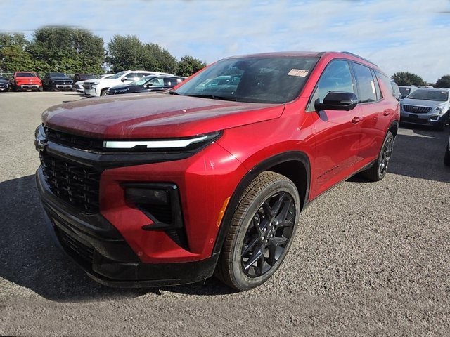 The vehicle features a Radiant Red Tintcoat exterior. Odometer is 4904 miles below market average! 2024 Chevrolet Traverse RS.