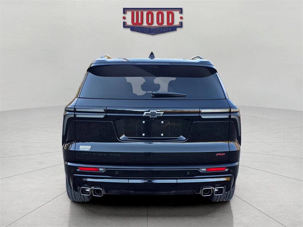 Clean CARFAX. Traverse RS, 4D Sport Utility, 2.5L DOHC, 8-Speed Automatic, AWD, Mosaic Black Metallic, Jet Black w/Torch Red Accents w/Evotex Seat Trim, 1st & 2nd Row All-Weather Floor Liners (LPO), 3rd Row All-Weather Floor Liner (LPO), 3rd row seats: split-bench, 6-Way Power Front Passenger Seat Adjuster, 8-Way Power Driver Seat Adjuster, Apple CarPlay/Android Auto, Automatic temperature control, Bose Premium 10-Speaker Audio System Feature, Electronic Stability Control, Exterior Parking Camera Rear, Floor Liner Package (LPO), Front Bucket Seats, Front dual zone A/C, Fully automatic headlights, Heated front seats, Heated rear seats, Navigation System, Perforated Leather-Appointed Seat Trim, Power driver seat, Power Liftgate, Power moonroof, Power windows, Preferred Equipment Group 2RS, Radio: 17.7" Diagonal Display, Rear air conditioning, Remote keyless entry, SiriusXM w/360L, Steering wheel mounted audio controls, Traction control, Ventilated front seats. Mosaic Black Metallic 2024 Chevrolet Traverse RS AWD 8-Speed Automatic 2.5L DOHC. A solid name you can trust... Wood Motor. Odometer is 6380 miles below market average!