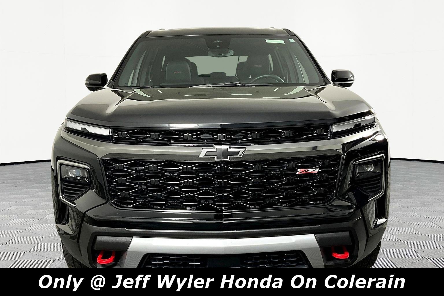 Jeff Wyler Honda of Colerain is very proud to offer this wonderful-looking 2024 Chevrolet Traverse Z71 in Mosaic Black Metallic. Well equipped with: Preferred Equipment Group 2Z7, 3rd row seats: split-bench, 4-Way Manual Front Passenger Seat Adjuster, 4-Wheel Disc Brakes, 6 Speakers, 6-Speaker Audio System Feature, 8-Way Power Driver Seat Adjuster, ABS brakes, Air Conditioning, Alloy wheels, AM/FM radio: SiriusXM with 360L, Apple CarPlay/Android Auto, Auto High-beam Headlights, Automatic temperature control, Brake assist, Compass, Delay-off headlights, Driver 4-Way Power Lumbar Seat Adjuster, Driver door bin, Driver vanity mirror, Dual front impact airbags, Dual front side impact airbags, Electronic Stability Control, Emergency communication system, Exterior Parking Camera Rear, Four wheel independent suspension, Front anti-roll bar, Front Bucket Seats, Front Center Armrest, Front dual zone A/C, Front reading lights, Fully automatic headlights, Heated door mirrors, Heated front seats, Heated steering wheel, Illuminated entry, Low tire pressure warning, Navigation System, Occupant sensing airbag, Outside temperature display, Overhead airbag, Overhead console, Panic alarm, Passenger door bin, Passenger vanity mirror, Power door mirrors, Power driver seat, Power Dual Glass Panoramic Sliding Sunroof, Power Liftgate, Power steering, Power windows, Premium Cloth Seat Trim, Radio data system, Radio: 17.7" Diagonal Display, Rear air conditioning, Rear anti-roll bar, Rear reading lights, Rear window defroster, Rear window wiper, Remote keyless entry, Security system, SiriusXM w/360L, Speed control, Speed-sensing steering, Spoiler, Steering wheel mounted audio controls, Tachometer.