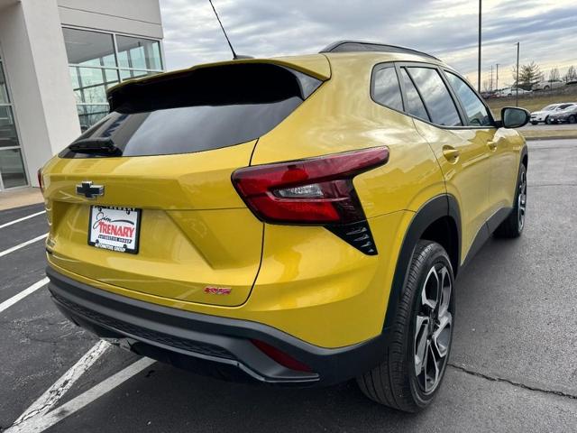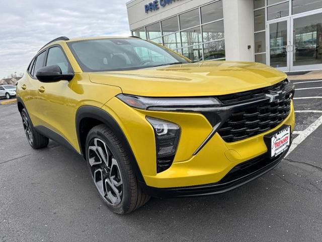 2024 Chevrolet Trax for sale near St. Peters in O'Fallon at Jim Trenary Chevrolet. Heated front bucket seats, Wi-Fi hotspot capable, back up camera, remote engine start, 4DR sport utility, ECOTEC 1.2L Turbo DOHC DI with variable valve timing, 6-speed automatic, FWD, 19" black painted machined aluminum wheels, keyless open with front doors includes extended range remote keyless entry; passive entry system can still be programmed to unlock all doors at once with one press or with two presses of the front door buttons, rear seat 60/40 split-bench folding, SiriusXM radio enjoy a platinum plan trial subscription with over 150 channels, 11" diagonal HD color touchscreen AM/FM stereo additional features for compatible phones include: Bluetooth audio streaming for 2 active devices/voice command pass-through to phone/wireless Apple CarPlay and wireless Android Auto capable, heated steering wheel with mounted audio/cruise control driver information center/forward collision alert gap adjust and phone interface controls, OnStar equipped (service required), Chevy Safety assist includes IntelliBeam, stability control system, dual front and side impact air bags, automatic emergency braking, following distance indicator, forward collision alert, front pedestrian braking, lane keep assist with lane departure warning, tire pressure monitor system and LATCH system for child restraint seats. Car buying made easy! Be the talk of the town when you roll down the street in this 2024 Chevrolet Trax. This terrific Chevrolet is one of the most sought-after vehicles on the market because it never lets owners down. Thanks for looking hope to hear from you soon.