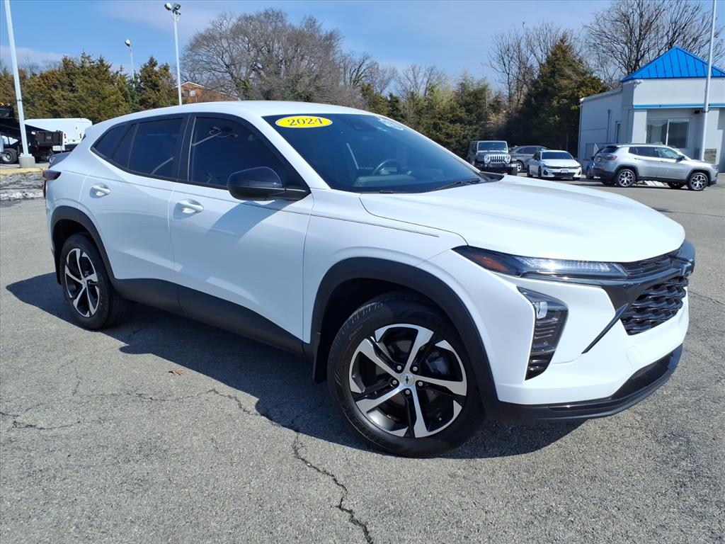Discover exceptional value with this 2024 Chevrolet Trax 1RS, now available in Roanoke, VA. With only 29,468 miles, this Chevrolet Trax delivers low-mileage reliability and a modern driving experience at the best price in the area. Powered by an efficient 3-cylinder 1.2L gasoline engine and front-wheel drive, it balances spirited everyday performance with impressive fuel economy — ideal for commuting, errands, and weekend adventures. Step inside to find comfort-focused features including a heated steering wheel for chilly mornings and Hands Free Bluetooth for safe, convenient connectivity on the go. Advanced safety technologies give you added confidence on every trip: Cross-Traffic Alert helps detect vehicles when backing up, Lane Keep Assist helps you stay centered in your lane, and a CARFAX Clean Report verifies a clear vehicle history for peace of mind. The 1RS trim adds sporty styling cues and practical amenities, making this Chevrolet Trax both stylish and sensible. Low mileage means years of dependable driving ahead, while the competitive price makes it a standout value among pre-owned compact SUVs in Roanoke. Whether you're shopping for a daily driver or a small family vehicle, this Chevrolet Trax checks the boxes for efficiency, safety, and smart features. Visit to see it in person and take a test drive — the best-priced 2024 Chevrolet Trax 1RS with these specs won't last long in Roanoke, VA.