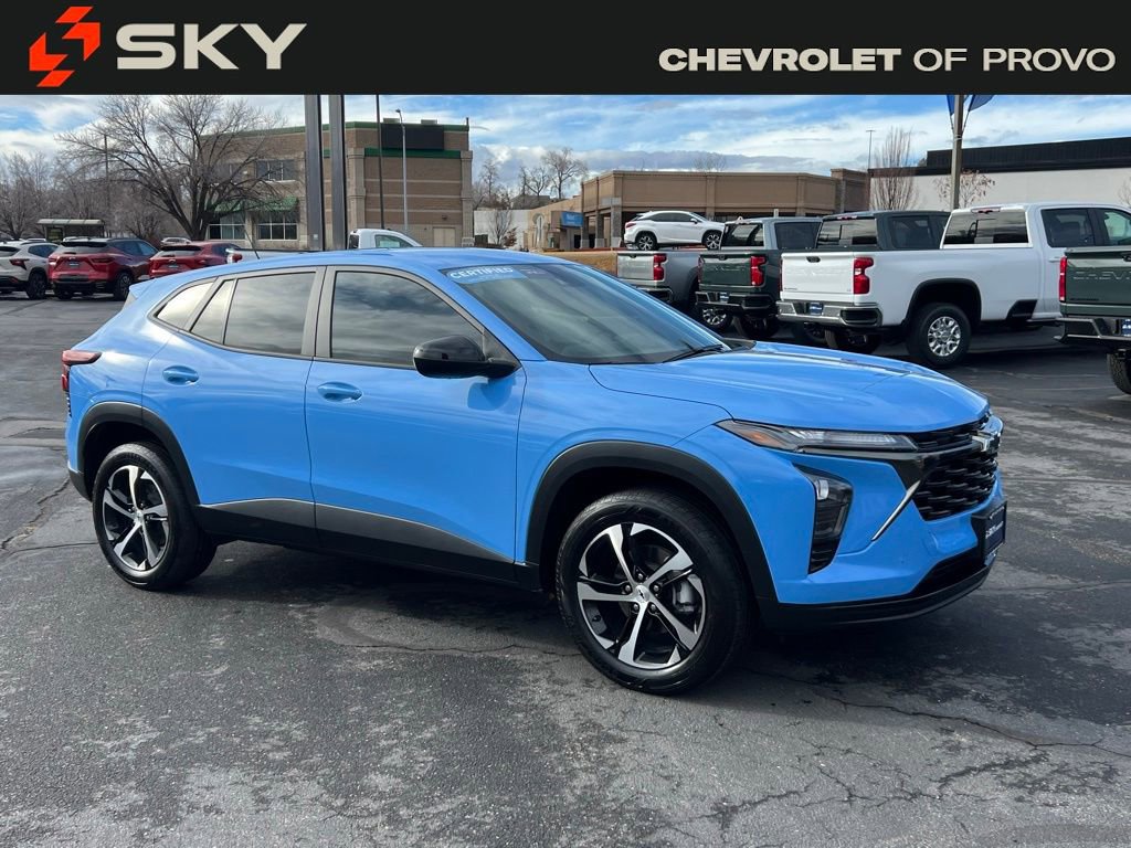 Fountain Blue 2024 Chevrolet Trax 1RS FWD 6-Speed Automatic 1.2L Ecotec Turbo DOHC DI w/VVT. Recent Arrival! Odometer is 10705 miles below market average! 28/32 City/Highway MPG. Car and Driver, January 2017. Check out our 5 Star Google Reviews! Drive a little save a lot. Sale Price Includes $1,000 Finance Savings. Contact Dealer For Details. Salt Lake Valley Chevrolet is dedicated to your satisfaction before, during, and after your purchase. We'll go the extra mile to take care of you.