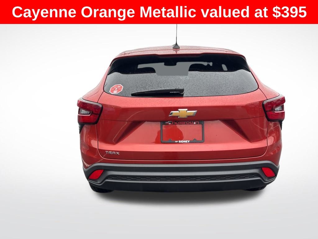 Discover the perfect blend of style, technology, and versatility in the 2024 Chevrolet Trax LS. This compact SUV is the ideal companion for your urban adventures, offering a dynamic driving experience and a wealth of premium features that elevate your daily commute. Powered by a 1.2L Ecotec Turbo DOHC DI engine with VVT, the Trax LS delivers an impressive balance of efficiency and performance. With an EPA-estimated 28 city/32 highway MPG, you'll enjoy the freedom to explore the city and beyond without frequent stops at the pump. Step inside the well-appointed cabin and discover a wealth of advanced technology. The Chevrolet Infotainment 3 system with a high-resolution touchscreen puts a world of connectivity and entertainment at your fingertips. Seamlessly integrate your smartphone, stream your favorite music, and access turn-by-turn navigation with ease. Comfort and convenience are the hallmarks of the Trax LS. Heated front seats and a leather-wrapped steering wheel provide a luxurious touch, while the spacious cargo area offers ample room for all your gear. The Driver Confidence Package further enhances your driving experience with advanced safety features like Rear Park Assist, Rear Cross-Traffic Alert, and Lane Change Alert with Side Blind Zone Alert. Dressed in a stunning Cayenne Orange Metallic exterior, the Trax LS exudes a bold and confident presence on the road. Its sleek, modern design is sure to turn heads wherever you go. Experience the perfect blend of style, technology, and versatility in the 2024 Chevrolet Trax LS. Visit Chesrown of Sidney today and let us help you discover the SUV that's tailored to your lifestyle.