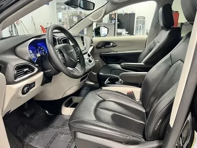 Used 2024 Chrysler Pacifica Touring L for sale in Tea, SD. Discover the 2024 Chrysler Pacifica Touring L, a versatile passenger van designed for families and active lifestyles. With a sleek Diamond Black Crystal Pearlcoat exterior and a spacious black interior, this used vehicle offers a comfortable seat for seven passengers. Powered by a 3.6L V6 engine paired with a smooth 9-speed automatic transmission, it delivers 287 horsepower and 262 lb-ft of torque, ensuring confident acceleration and efficient highway cruising at an impressive 28 mpg. Equipped with front-wheel drive, this Pacifica balances performance and practicality, making every journey enjoyable. Its well-maintained condition with 60,175 miles means it’s ready for many more adventures. This model is packed with features like adaptive cruise control, Apple CarPlay, a backup camera, blind spot monitoring, Bluetooth connectivity, collision warning, cross traffic alert, heated seats, keyless entry, lane keep assist, memory seats, push-start ignition, rear A/C, satellite radio compatibility, and a third-row seat, all aimed at enhancing your driving experience. The safety suite begins with automatic emergency braking at the rear, designed to prevent or mitigate rear collisions. Check rear seat reminder helps ensure no passenger is left behind. Dual front knee airbags offer added protection, complemented by rear parking sensors that assist in tight spaces. The vehicle is equipped with four-wheel ABS for superior stopping power and emergency braking preparation to respond swiftly in critical moments. Power door locks include anti-lockout and auto-locking features, enhancing security. Brake drying improves braking performance in wet conditions, while the electronic parking brake automatically disengages when not in use, adding convenience and safety. The Pacifica Touring L boasts a 10.1-inch infotainment touchscreen that puts a range of entertainment options at your fingertips. It includes Pandora internet radio and a touch screen radio display for easy control of your music and apps. Hands-free phone call integration ensures safe communication on the go, while Amazon Alexa connectivity allows voice-activated control of compatible devices. The audio system features six speakers, with auxiliary inputs via USB and iPod/iPhone for seamless media playback. Additionally, in-car apps and messaging assistance with read functions keep you connected and entertained during every trip. Under the hood, the Pacifica is equipped with an auto start/stop feature that improves fuel efficiency by shutting down the engine during idling. Its tuned suspension provides a comfortable ride, especially suited for touring and long-distance travel. These performance features make the Pacifica not only practical but also enjoyable to drive, ensuring a smooth and responsive experience on every road.