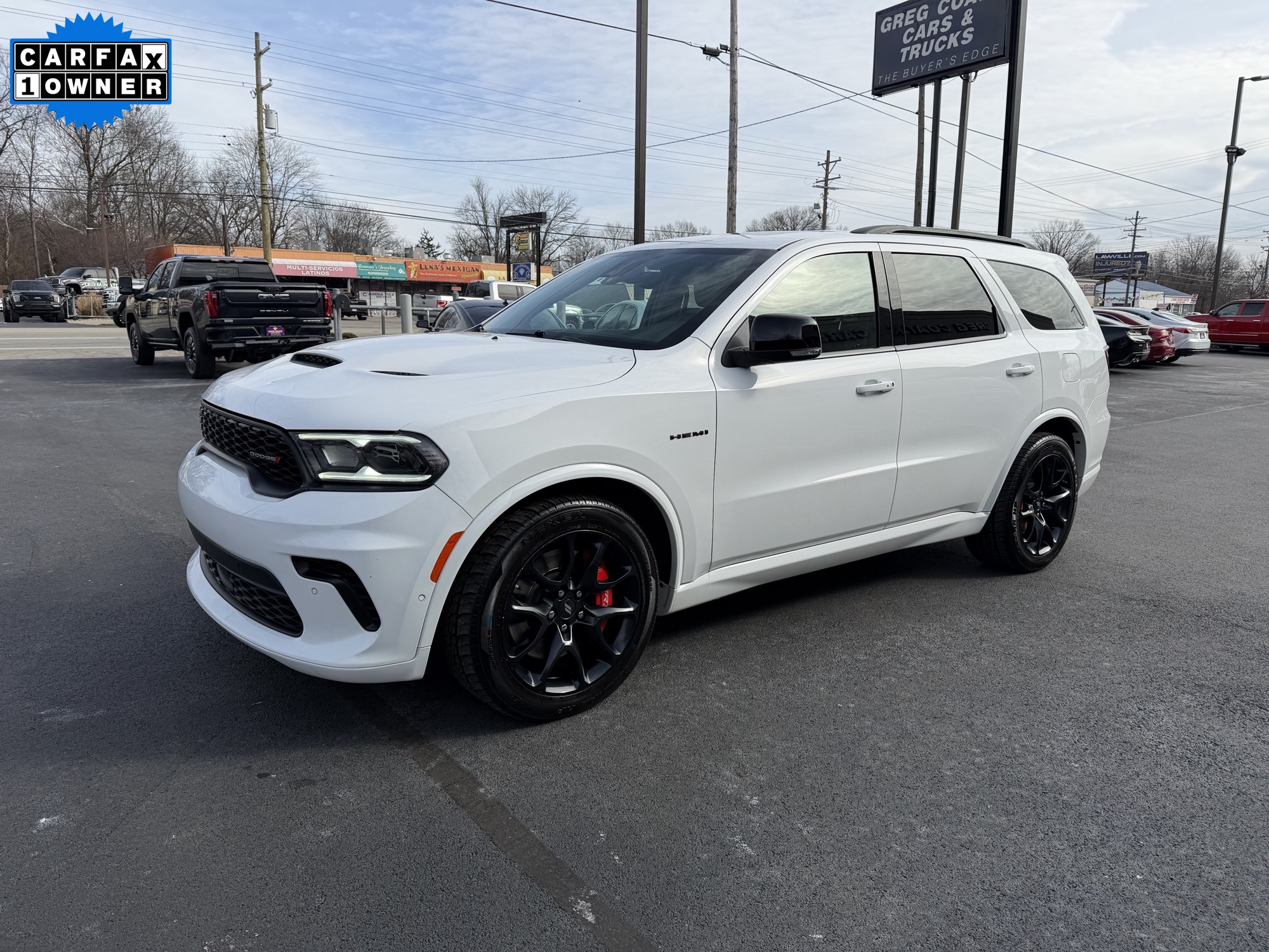 2024 Dodge Durango R/T AWD 8-Speed Automatic HEMI 5.7L V8 Multi Displacement VVT White Knuckle Clearcoat Carfax One-Owner. Clean Carfax. Apple CarPlay, Android Auto, Navigation, Sunroof/Moonroof, Heated Seats, Cooled Seats, Leather Seats, Remote Engine Start, Backup Camera, 3rd Row Seats, All-Wheel Drive, Blind Spot Monitor, Lane Departure Warning, Bluetooth, Premium Sound System, Heated Steering Wheel, Tow Hitch. Family owned and operated for 55+ years! All vehicles are fully serviced by our ASE certified mechanics! On the lot financing available with any vehicle on the lot! We have the solution for you and your family! We specialize in selling a like new, late model car, truck or SUV for less, with all types of financing available, and they are all Certified pre-owned! We have the capability to get you in the automobile of your choice. Bad credit/good credit/no credit!? No problem! We have financing options for each individual customer! Everyone is approved! Call us today at 5029694900!