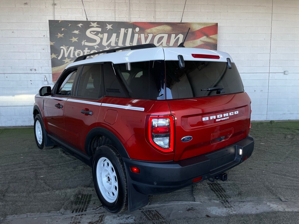 If you're searching for the BEST PRICE on a quality pre-owned vehicle, look no further. Our NO-PRESSURE & professional sales staff is eager to assist you! NO ADDENDUMS! That's Right, no $3900 Desert Protection Plan, No CRAZY non-disclosed add-ons (NO BS). THE PRICE YOU SEE IS THE PRICE YOU PAY! With over 500 vehicles in-stock, we guarantee we have a vehicle for everyone! *See Dealer for Details. Hot Pepper Red Metallic Tinted Clearcoat 2024 Ford Bronco Sport Heritage 4WD 8-Speed Automatic 1.5L EcoBoost. At Sullivan Motor Company, it is our goal to provide our honored clients with an excellent purchase and ownership experience. We provide our clients with a 3 Month / 3,000 Mile Powertrain Warranty on ALL* vehicles! 25/29 City/Highway MPG.