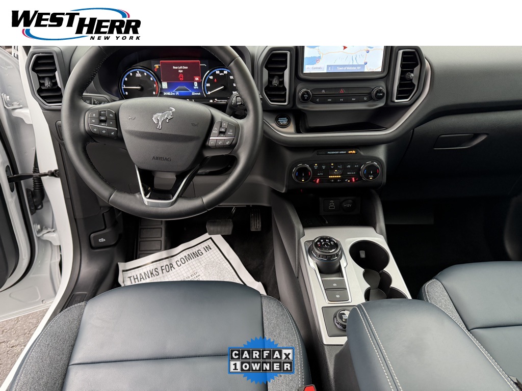 Oxford White 2024 Ford Bronco Sport Outer Banks 4WD 8-Speed Automatic 1.5L EcoBoost Equipment Group 300A, Evasive Steering Assist, Ford Co-Pilot360 Assist+, HD Radio, Heated door mirrors, Intelligent Adaptive Cruise Control with Stop & Go, Memory seat, Power driver seat, Power Moonroof, Rear Parking Sensors, Remote keyless entry, Steering wheel mounted audio controls, SYNC 3 Communications & Entertainment System, Tech Package, Universal Garage Door Opener (UGDO), Voice-Activated Touchscreen Navigation System, Wireless Charging Pad. Recent Arrival! 25/29 City/Highway MPG. IMPORTANT RECALL INFORMATION. Some vehicles may be subject to unrepaired safety recalls. Go to www.safercar.gov to learn whether an individual vehicle is subject to an open recall.